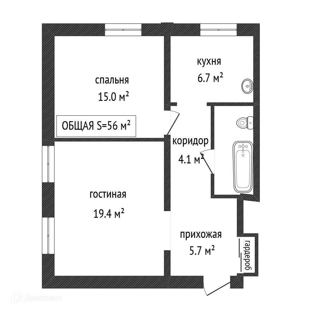 Общая площадь 56 м2