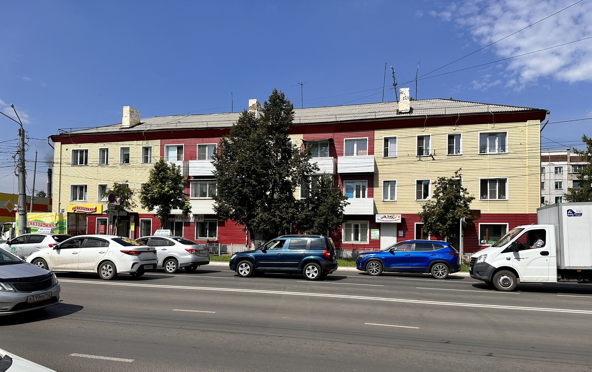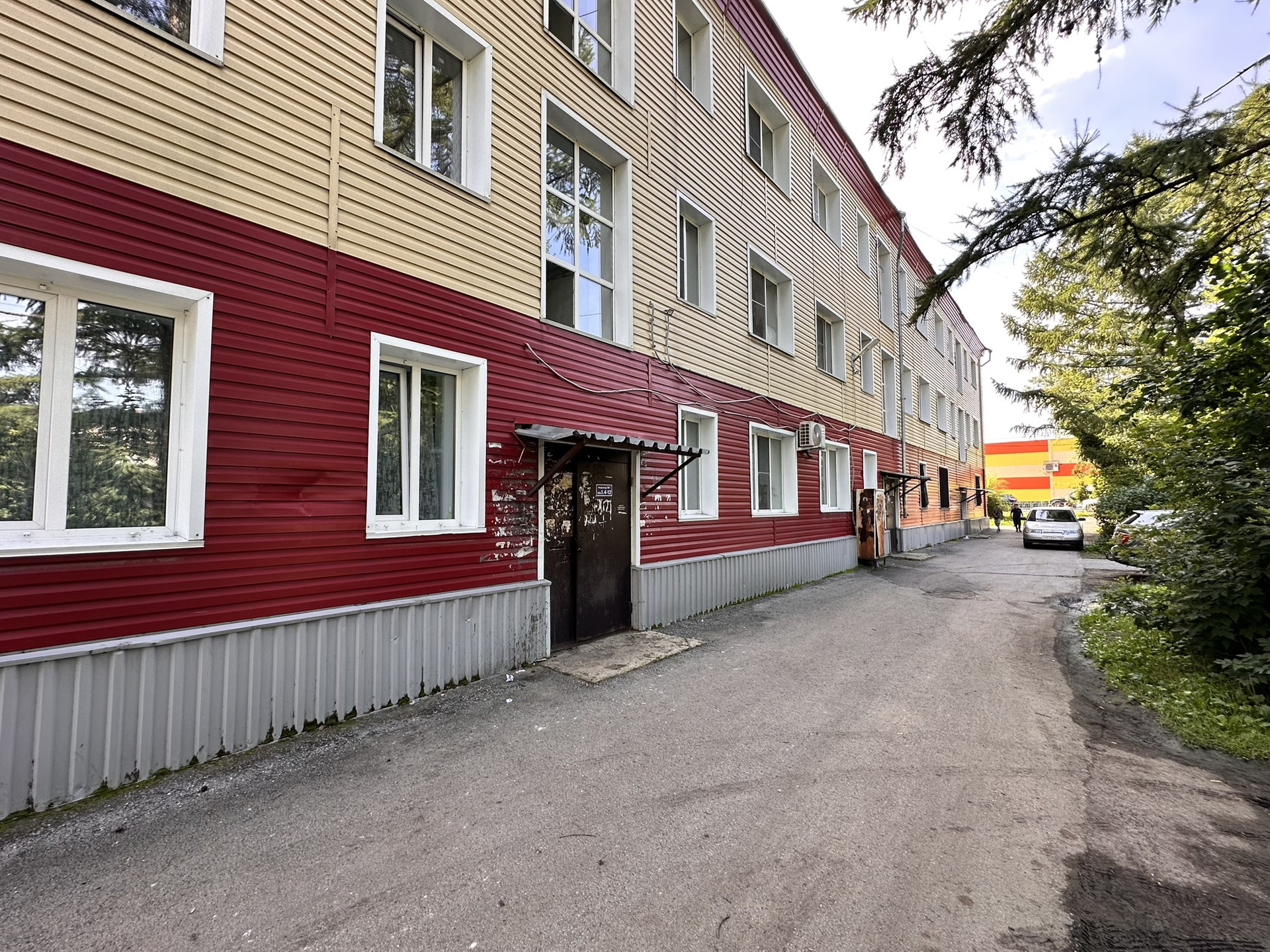 Квартира расположена на третьем этаже трёхэтажного кирпичного дома, построенного в 1961 году. Несмотря на свой возраст, дом хорошо сохранился и поддерживается в хорошем состоянии. На территории вокруг дома развитая инфраструктура: рядом находятся школа, детский сад и торговый центр, что делает эту локацию особенно привлекательной для семей с детьми.