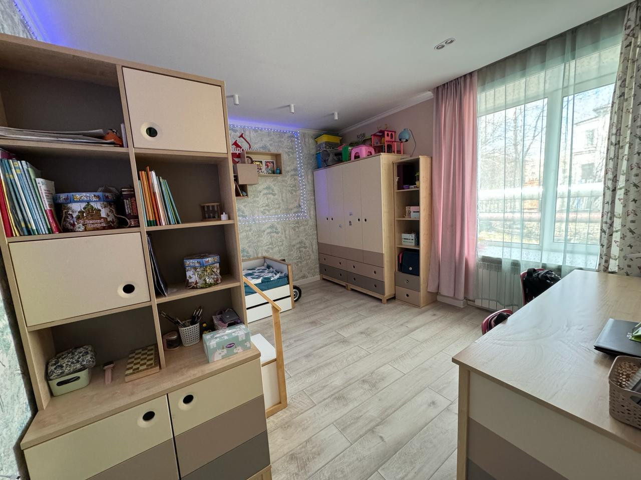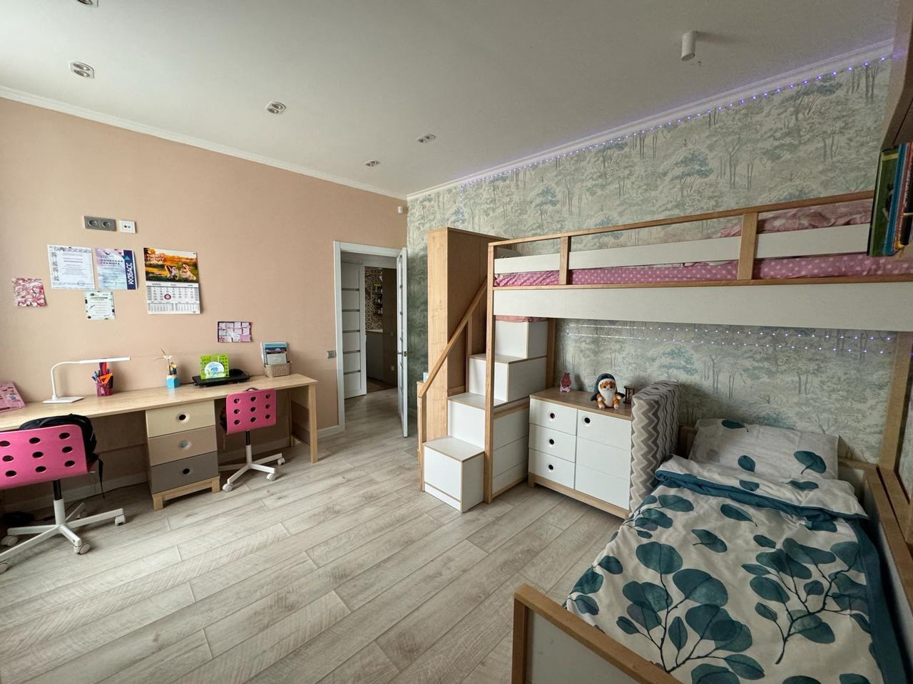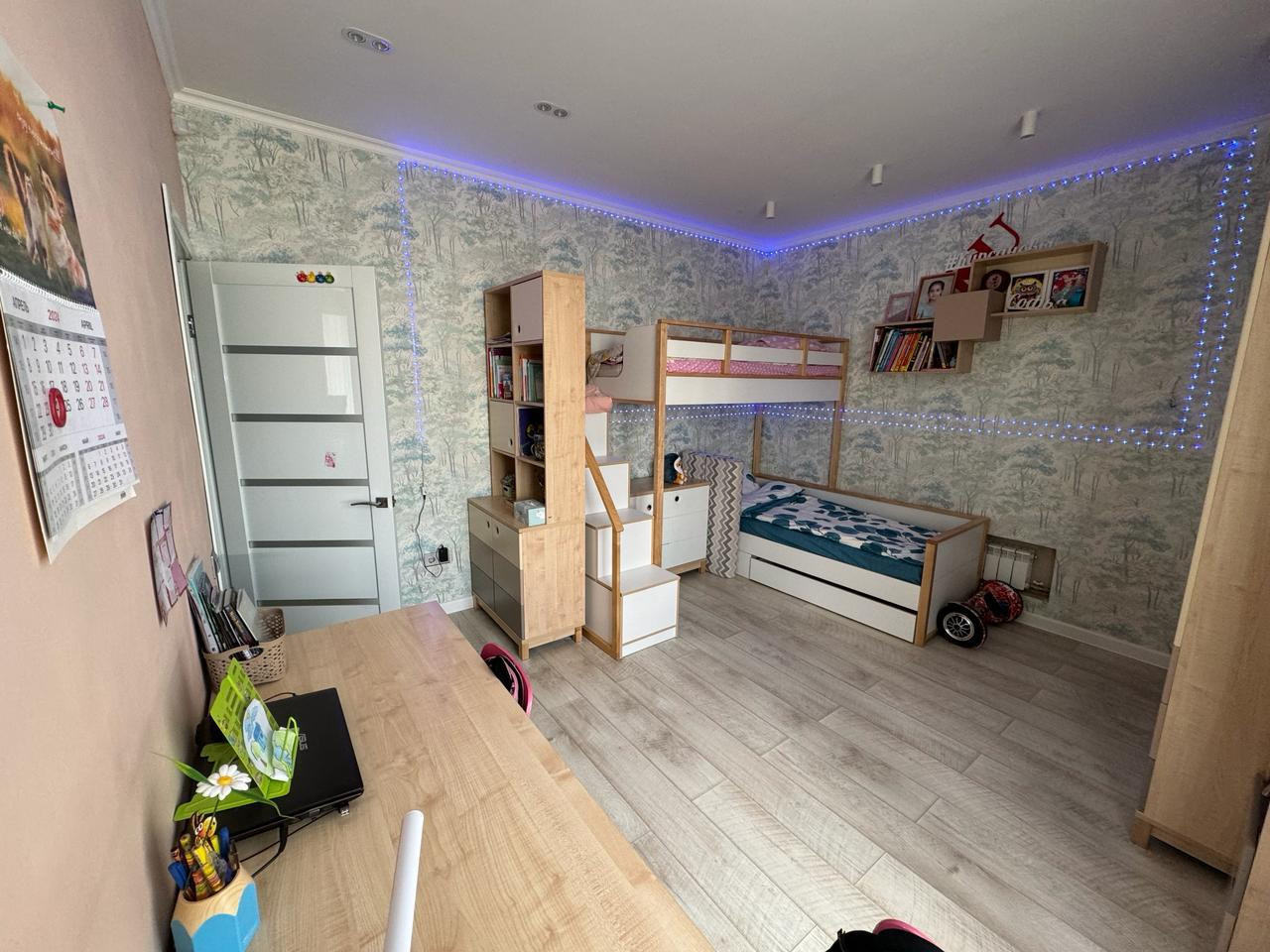 Рядом с домом расположены все необходимые объекты инфраструктуры: школа, детский сад, торговый центр и парк, что делает эту квартиру идеальным выбором для семьи с детьми.