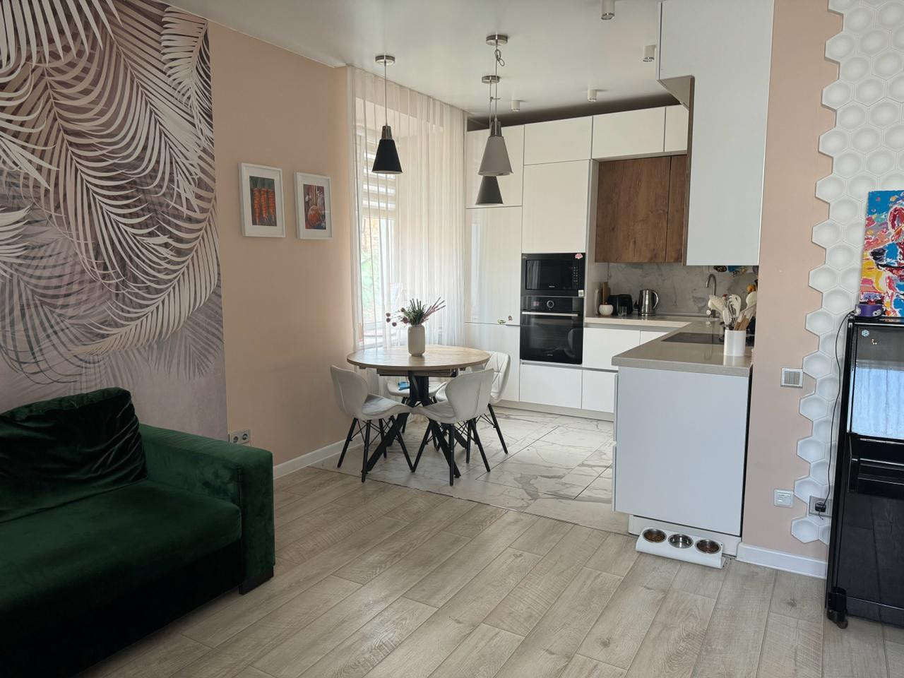 В квартире выполнен дизайнерский ремонт, что придаёт ей особый шарм и комфорт. Светлая и просторная кухня площадью 9 квадратных метров станет отличным местом для семейных завтраков и ужинов. Все комнаты оформлены с учётом современных тенденций и потребностей жильцов. Санузел совмещённый, что является удобным решением для экономии пространства.