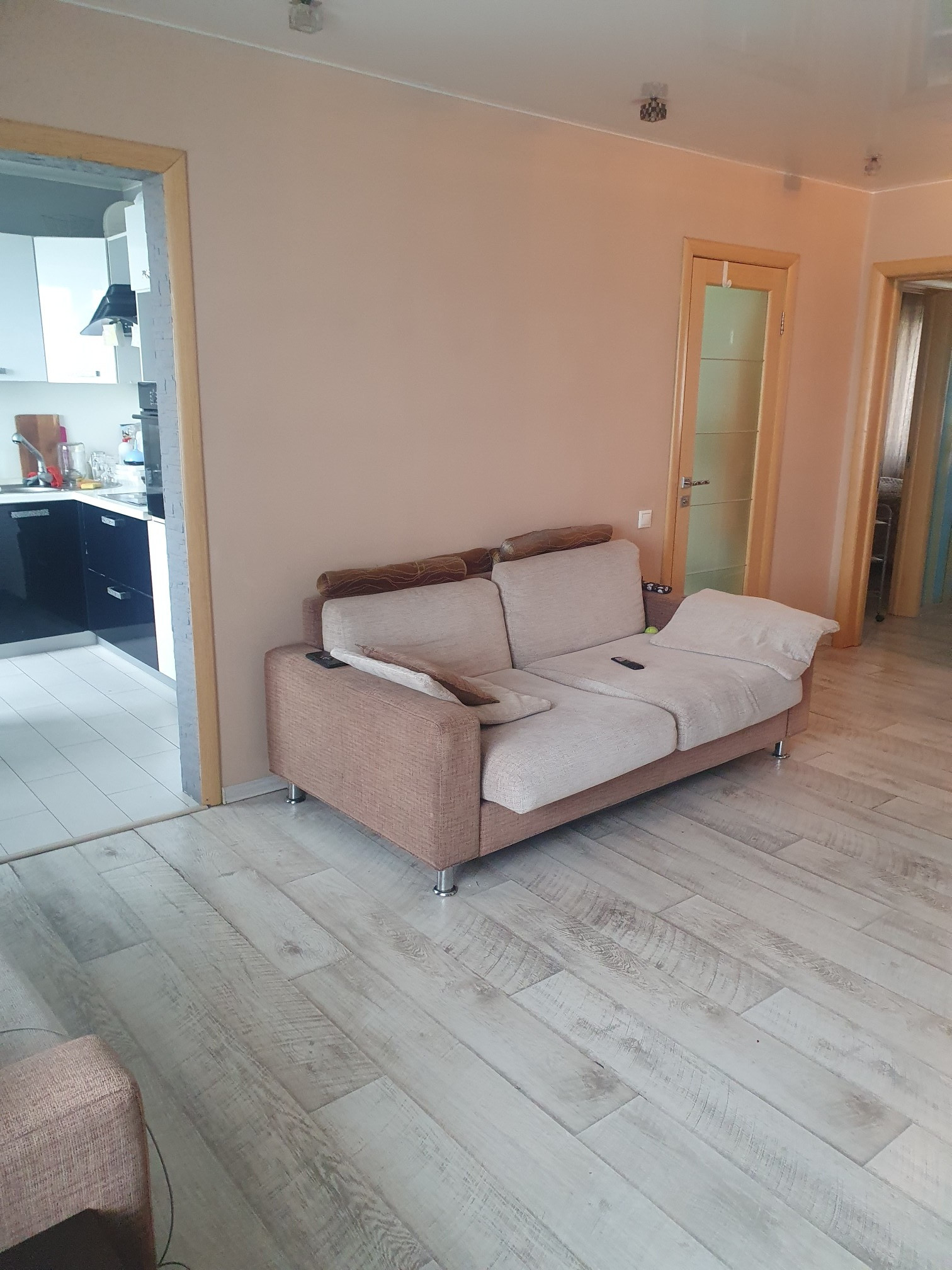 Продам 3 комнатную квартиру. В шаговой доступности магазины, остановки общественного транспорта, 2 детских сада, школа, школа искусств, торговые центры. Перепланировка узаконена. Квартира теплая, светлая. Встроеная мебель- кухня, детская, прихожая, всё остаётся новым хозяевам. Полы ламинат и плитка, потолки натяжные. Кухонный гарнитур укомплектован техникой- стиральная, посудомоечная машины, печь керамическая, духовой шкаф с грилем, хлодильник и 2 морозильные камеры.  Просторная ванная комната с джакузи и биде.  Лоджия застеклена  ПВХ. Сигнализация, телефон, кабельное ТВ, интернет Гудлайн. В подъезде кладовая. Торг при осмотре.