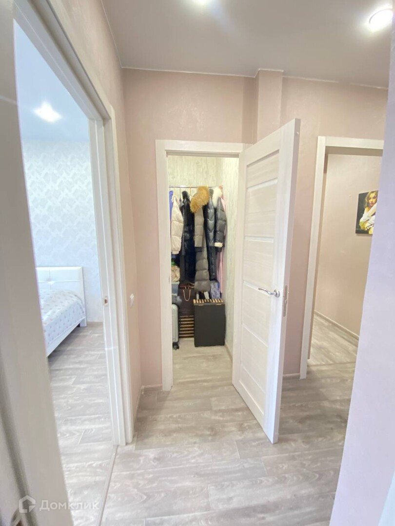 Все три комнаты изолированные, вход в комнаты через коридор, современные межкомнатные двери. Просторная кухня более 9,1кв.м. со встроенной кухней, которая останется новым хозяевам, гардеробная