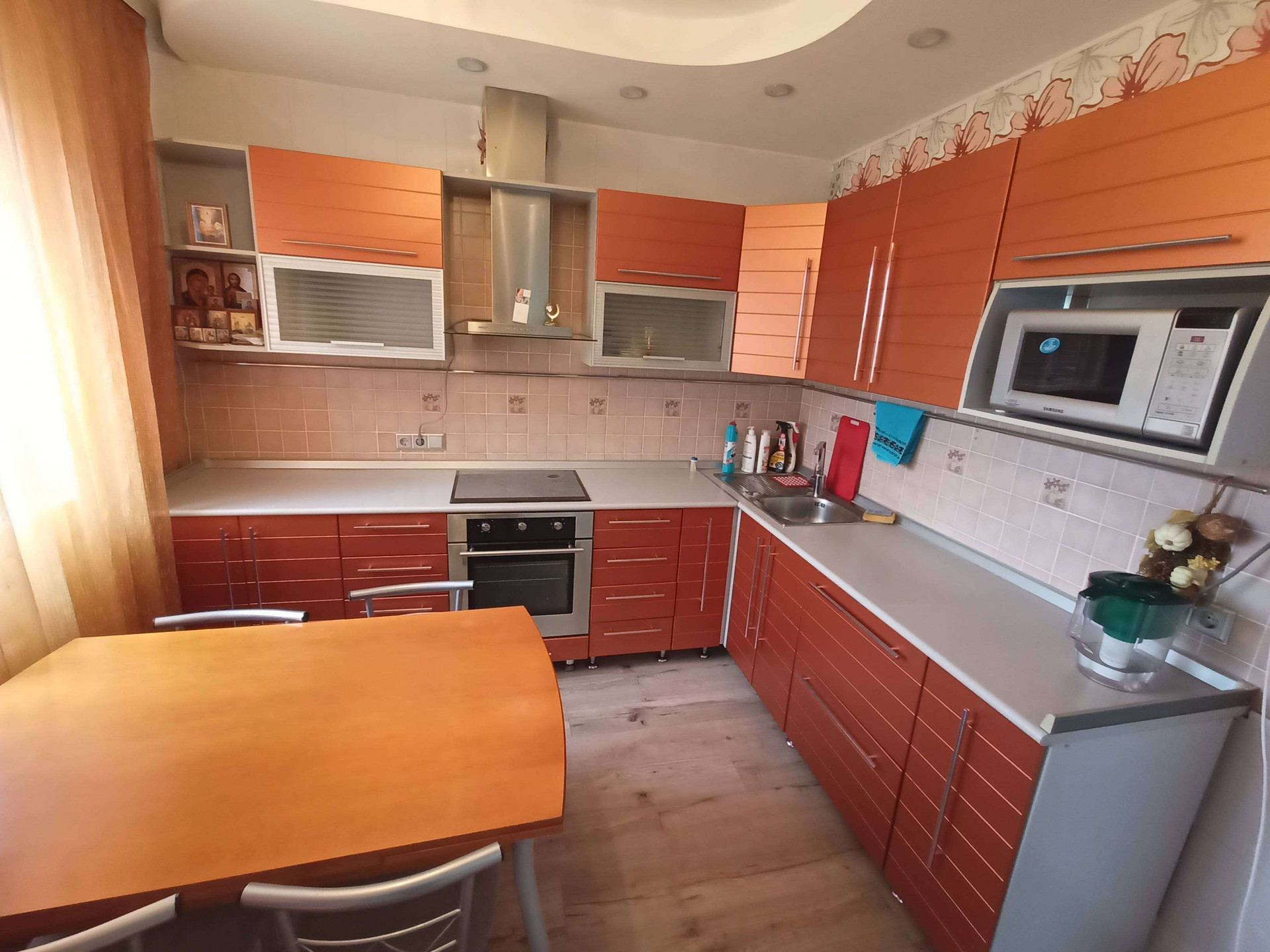В стоимость входит мебель и бытовая техника: кухонный гарнитур, варочная панель, духовой шкаф, вытяжка. Тумба в ванной комнате. Встроенные шкаф-купе в прихожей, а также в каждой комнате