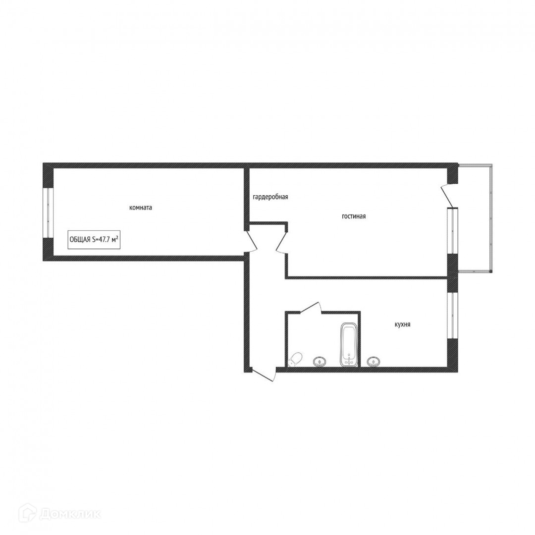 Общая площадь 47.7 м2