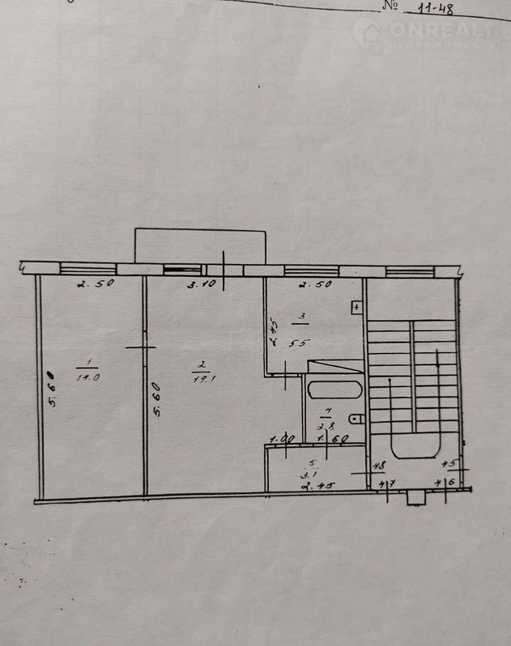 2-комнатная квартира, 44.5 м2, этаж 2 / 5, на продажу в Ленинске-Кузнецком, улица Пушкина, 11