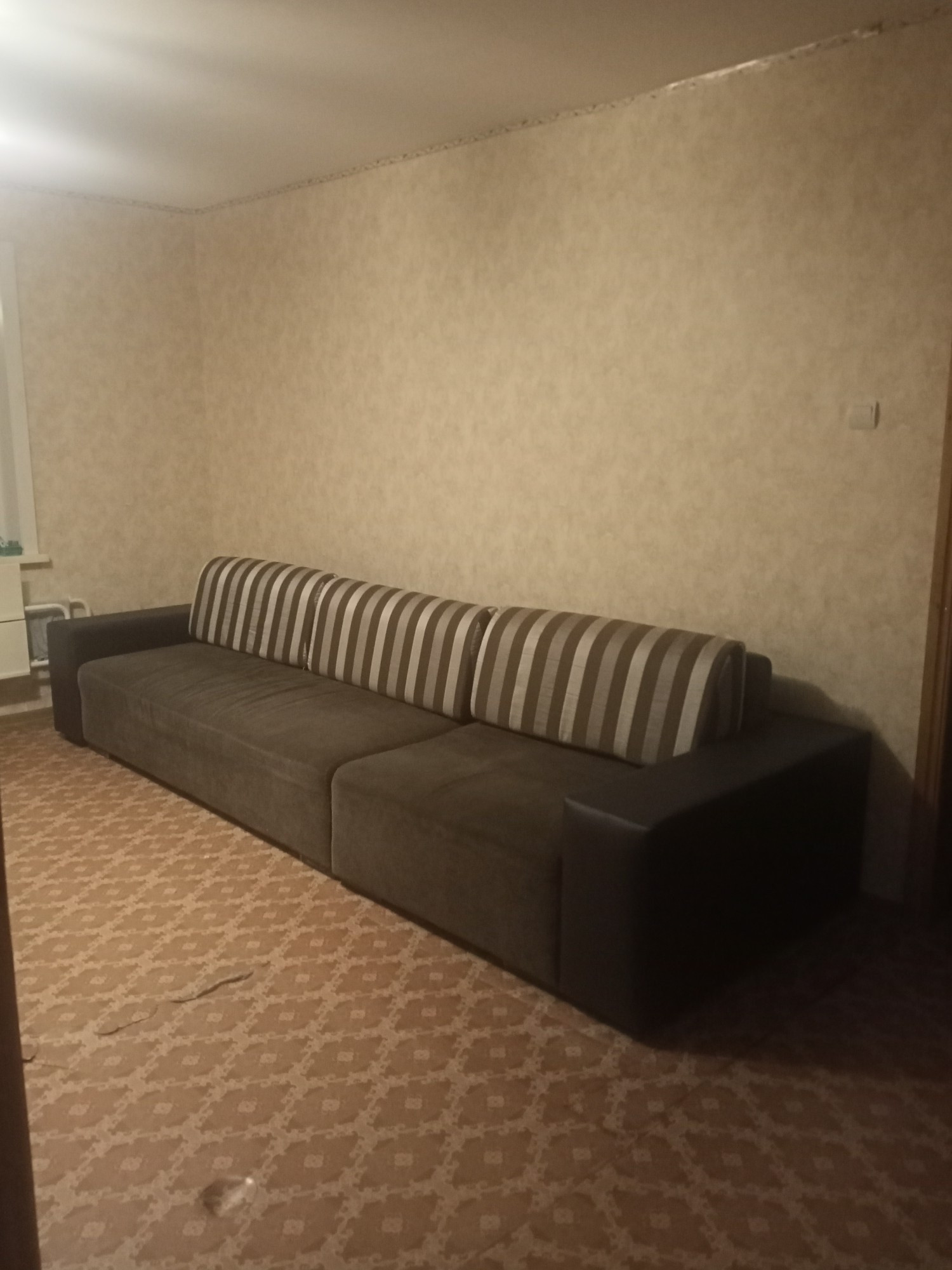 В квартире имеются: большой диван, софа, двуспальная кровать, шкаф для одежды, тумба, кухонный гарнитур. Из техники: холодильник, стиральная машина, электрическая плита.