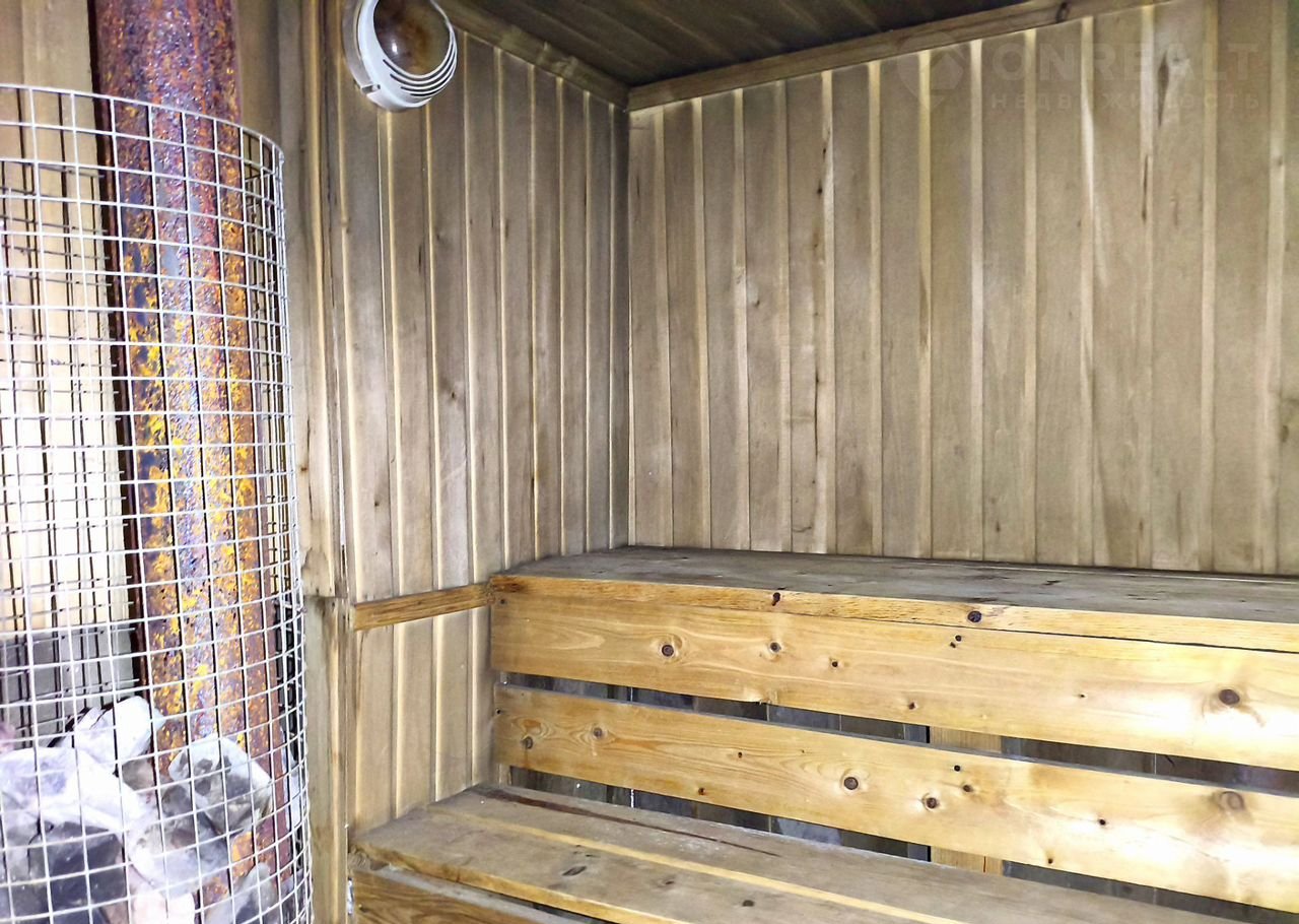 На участке бетонная парковочная зона, кирпичный гараж, баня, туалет, хоз постройки, сад.
