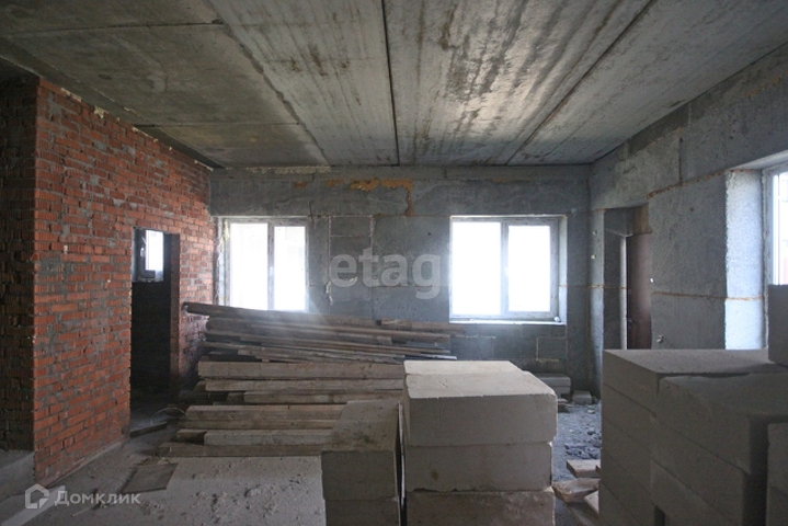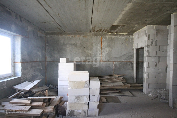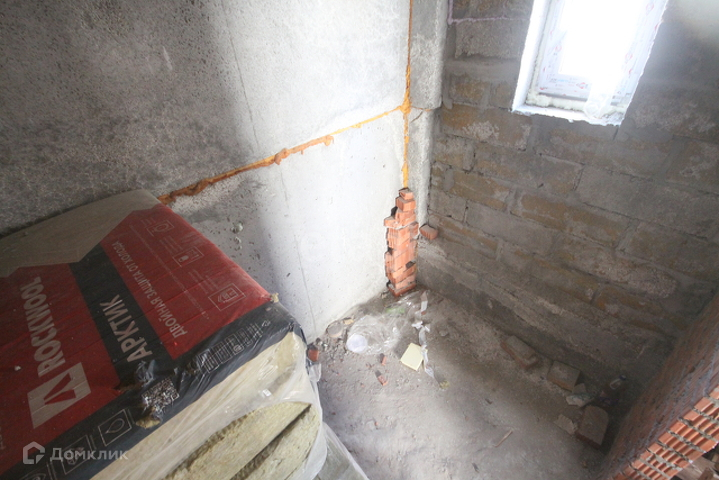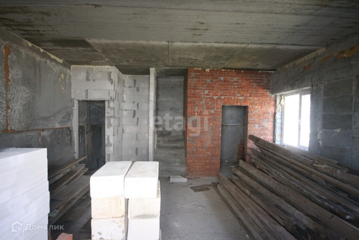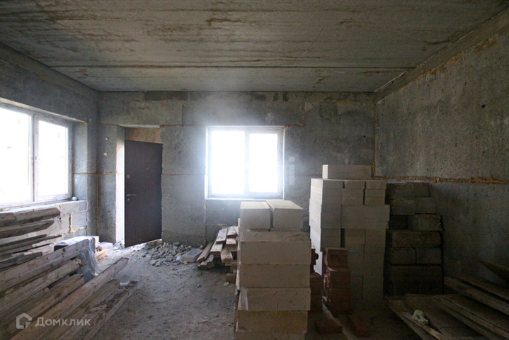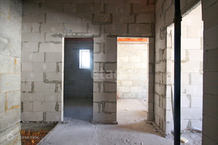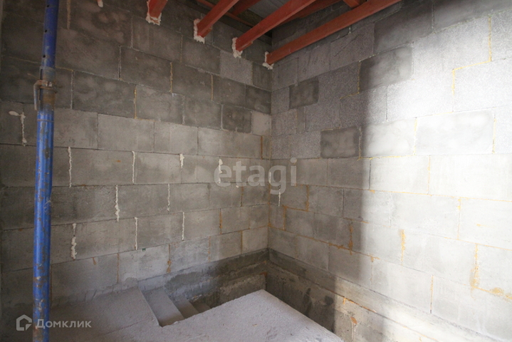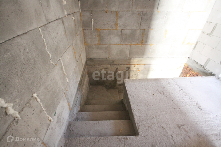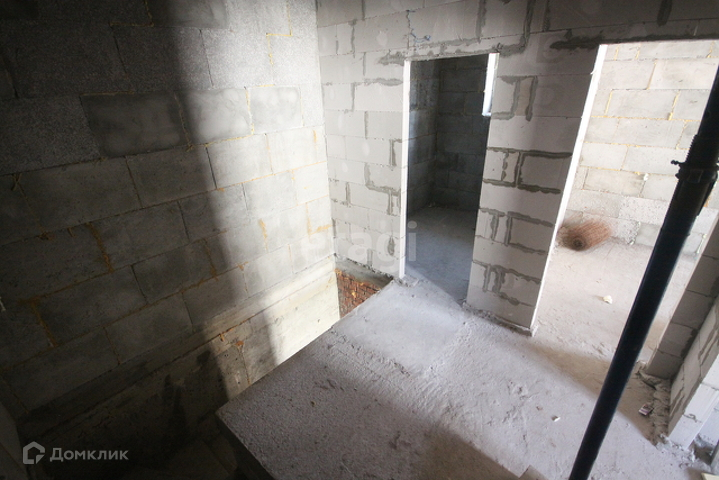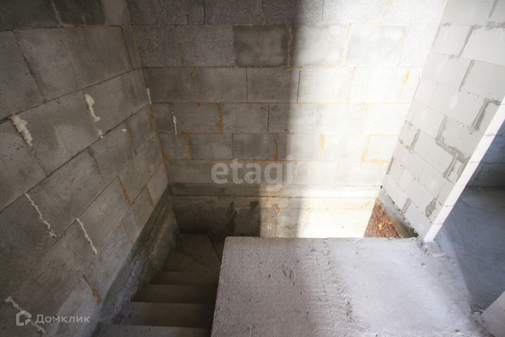 Стоит железная дверь, комнаты разделены кирпичной кладкой, между этажами бетонные плиты, лестница из бетона.