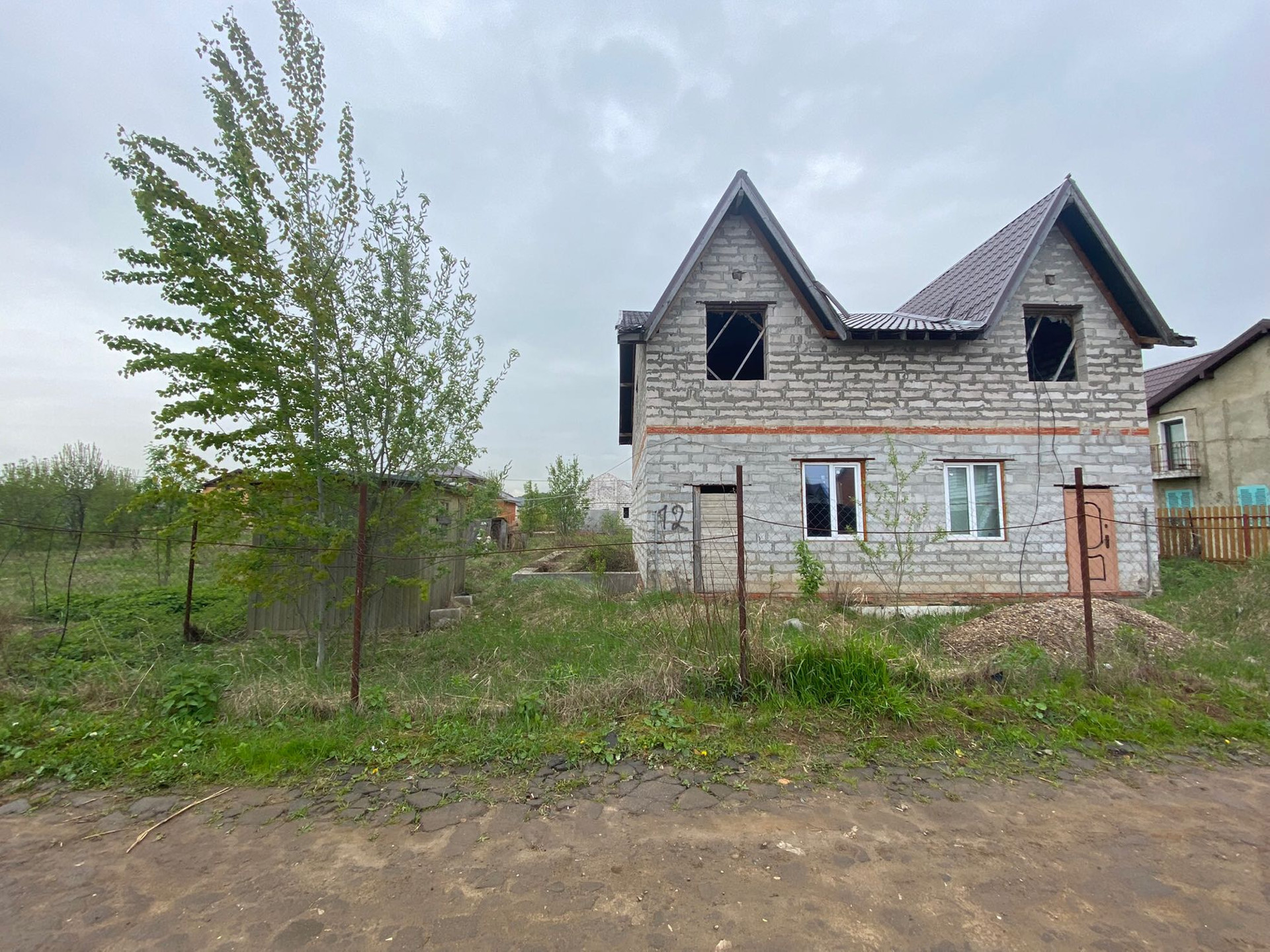 Фундамент свайно-ленточный, выложен в 2016г., с разводкой под коммуникации.  Перекрытия - монолитные плиты. Коттедж из газосиликатных блоков D500, можно достроить по плану или внести изменения под свои потребности. Со 2-го этажа дома открываются живописные места. Строили для себя. Участок правильной формы, располагается на возвышенности. Дорога - асфальт крошка.  Подключение к централизованному газу планируется в ближайшее время.