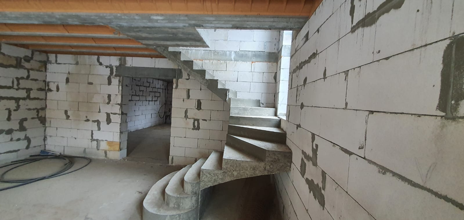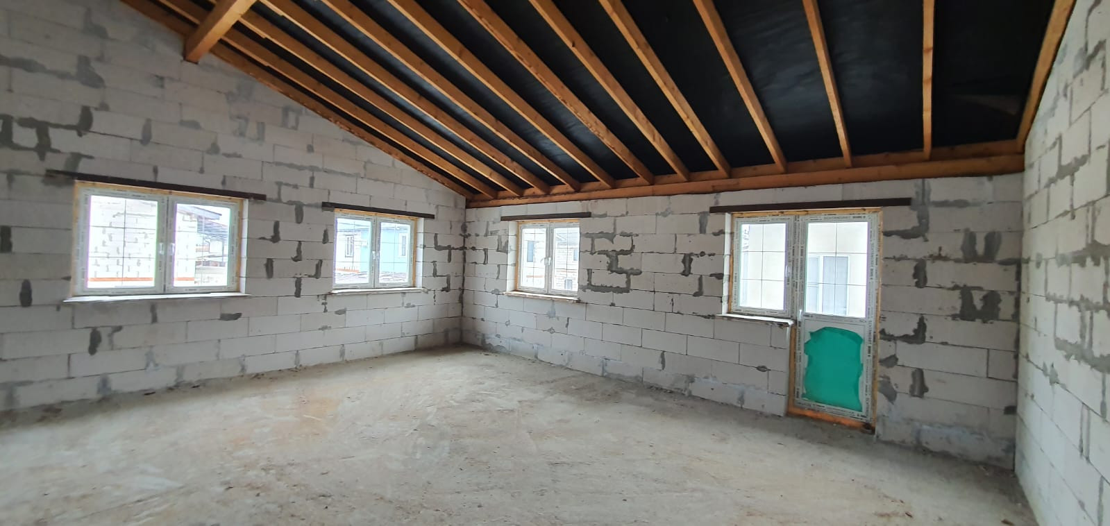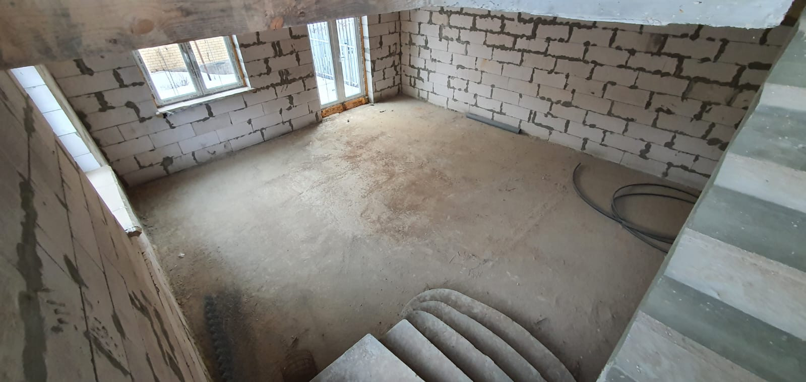 Дом построен из качественного пеноблока (строили для себя). Материал стен - кирпич, пенобетон, перекрытия - ж/б плиты, бетонный фундамент, вокруг отмостка и дома дренаж. Планировка: первый этаж два помещения по 50 м2 можно сделать гостиную и спальню. Второй этаж два больших помещения, можно сделать 3-4 спальни.