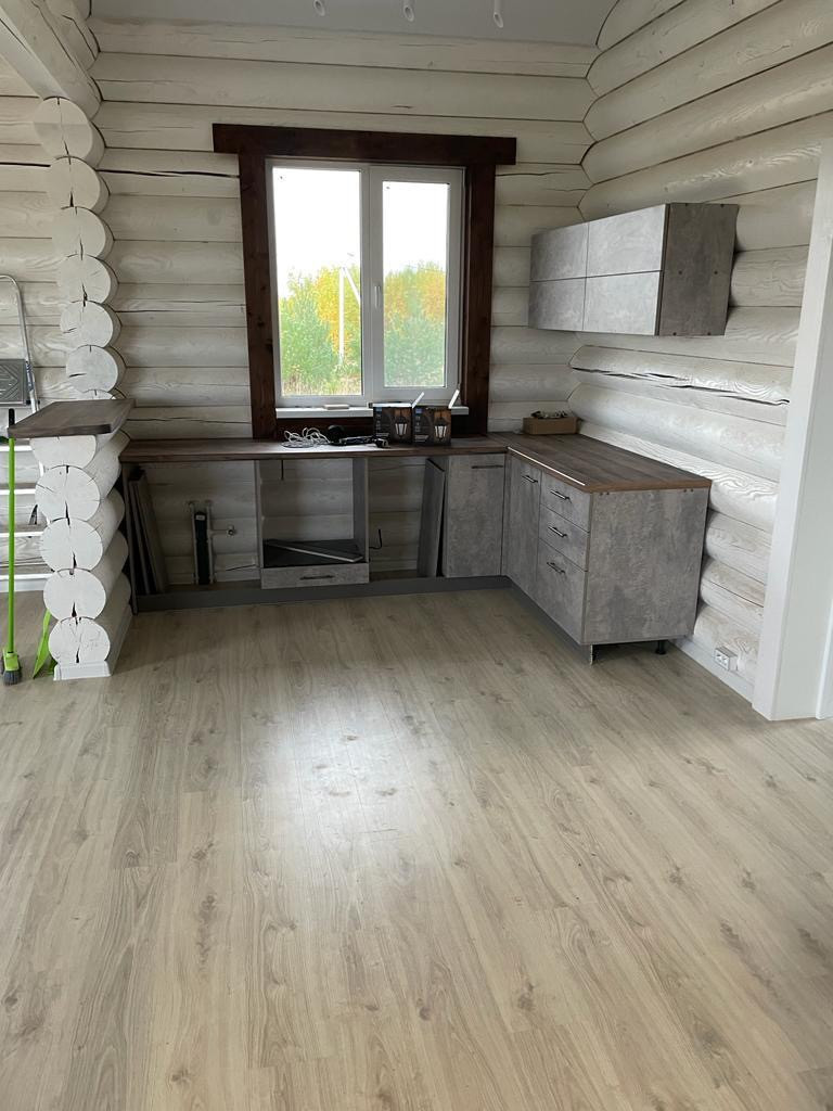 Установлена кухня, выведены все коммуникации.