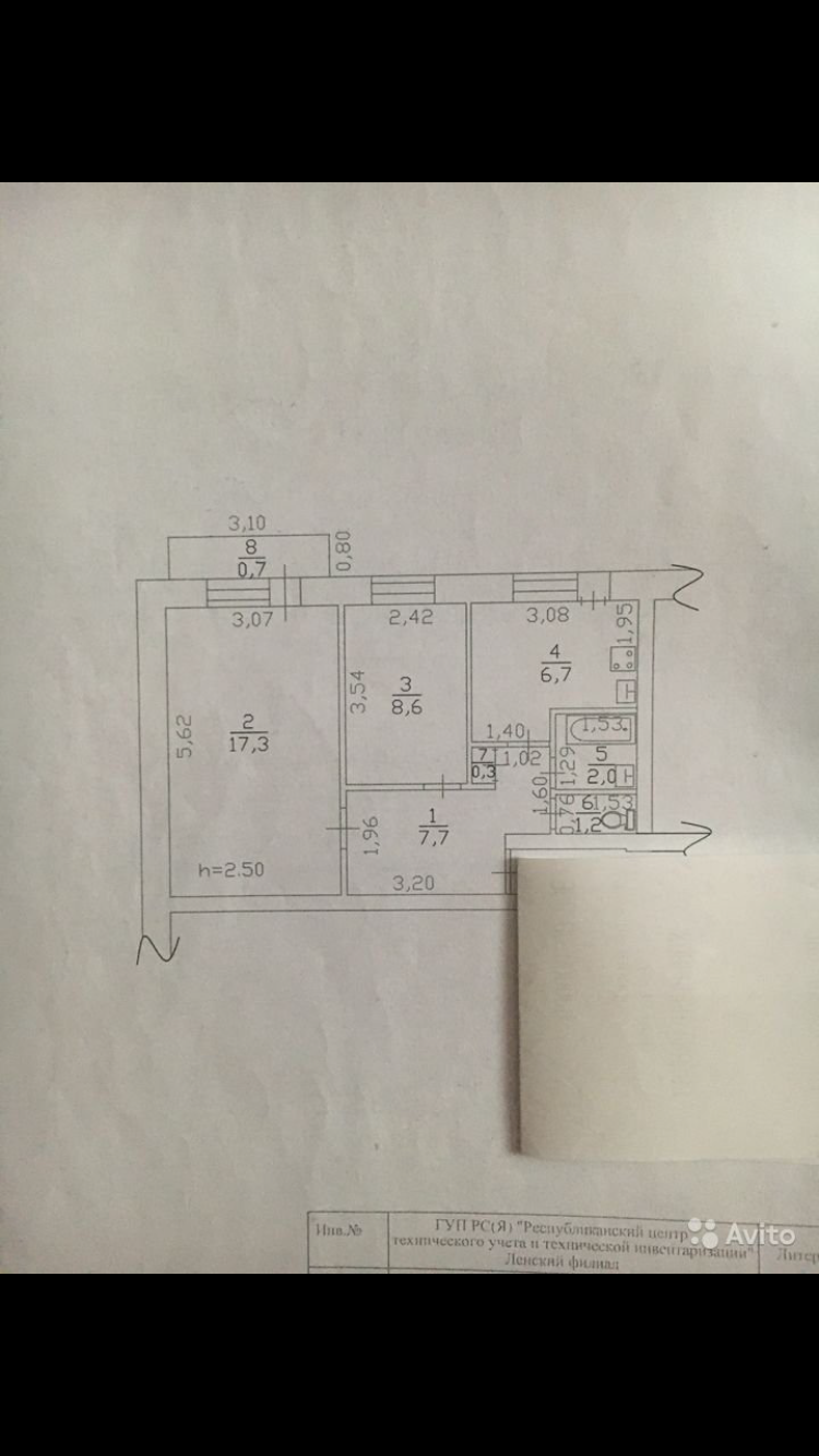 2-комнатная квартира, 43.8 м2, этаж 3 / 5, на продажу в Ленске, Портовская улица, 24