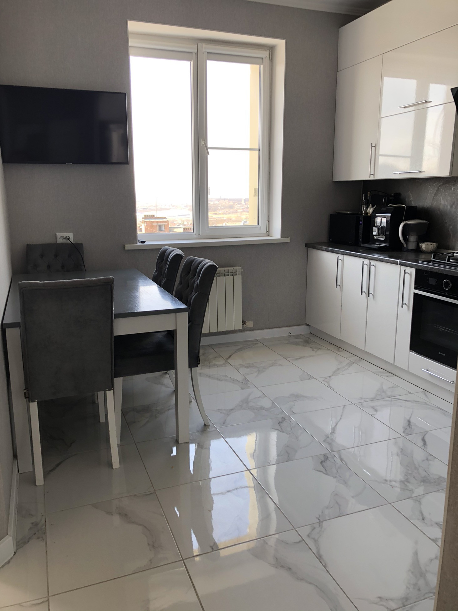 Индивидуальное отопление. ( новый котёл BAXI, замена батарей). Окна выходят на улицу, красивый панорамный вид на горы .