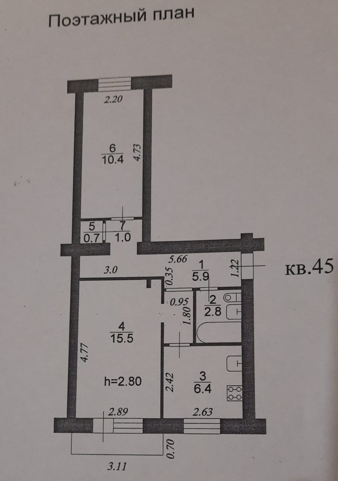 Высота потолков 2.8 м