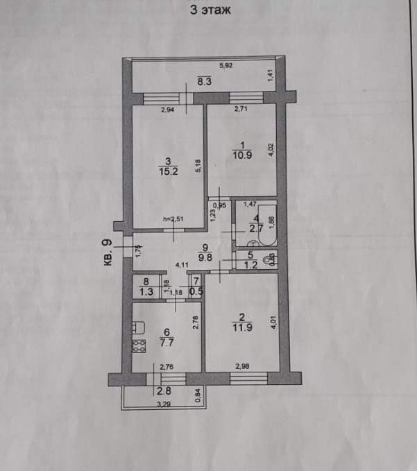 Высота потолков 2.8 м