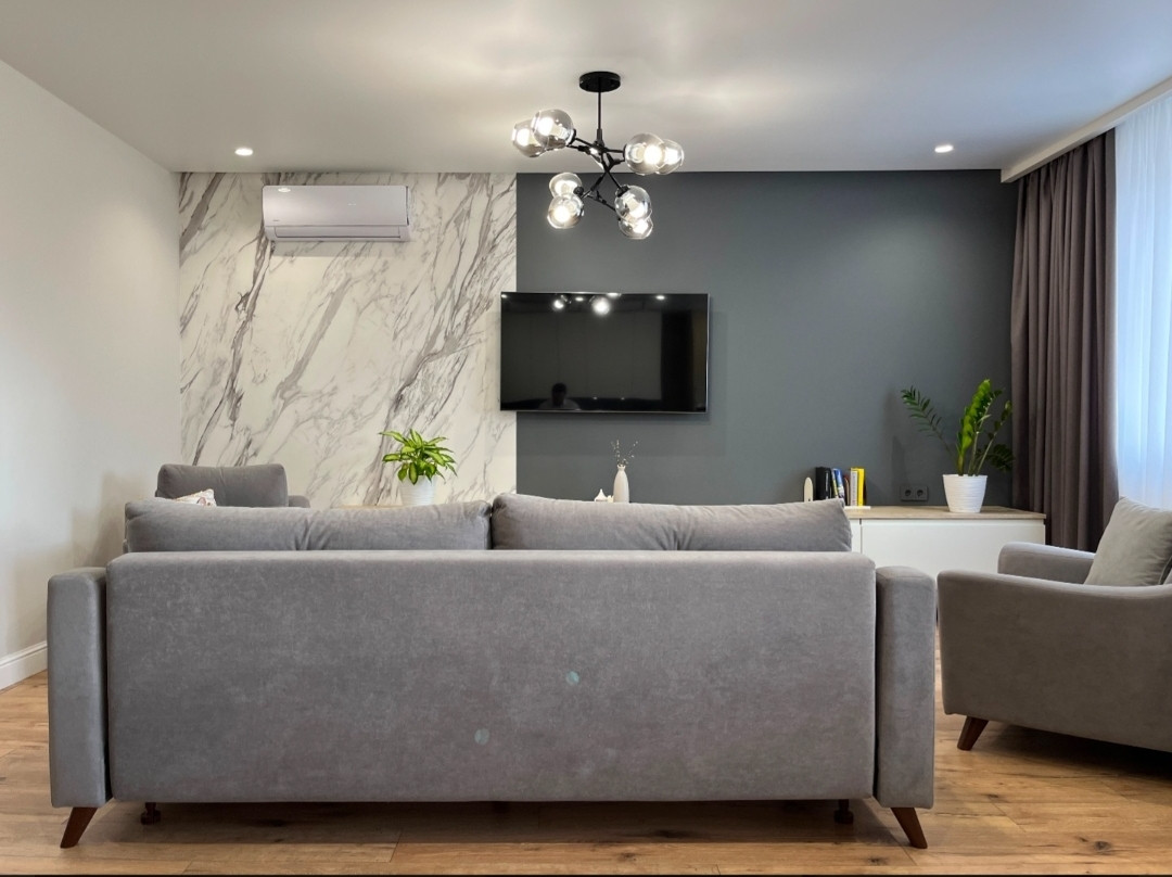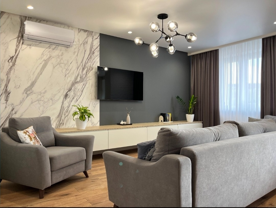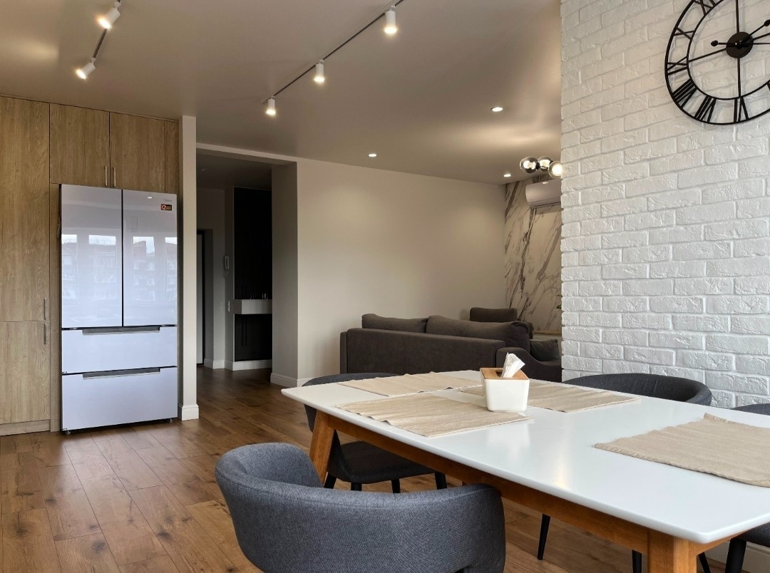 5-комнатная 2-уровневая квартира с дизайнерским ремонтом находится в самом центре города.
