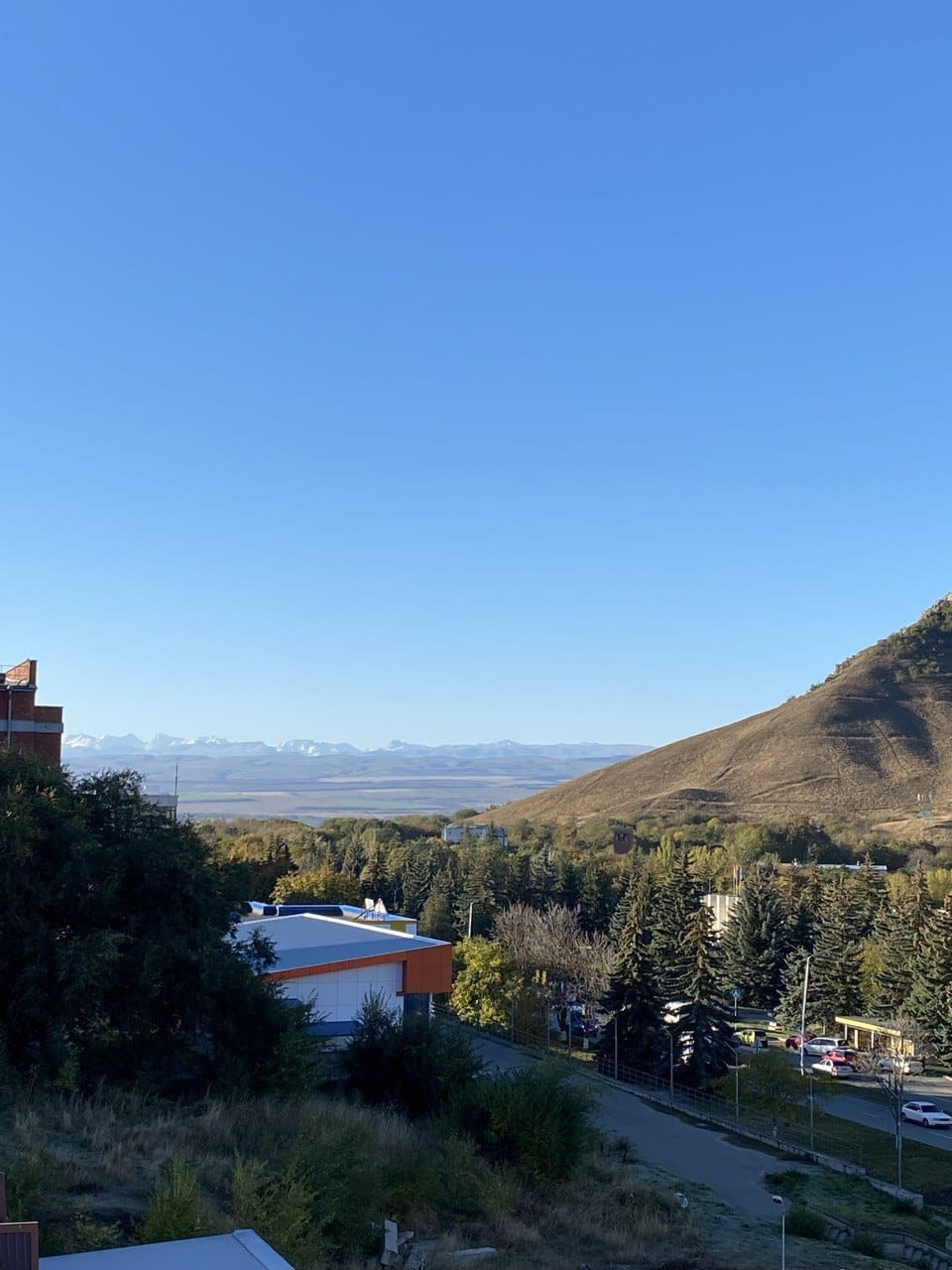 Из окон вид на Кавказский хребет.