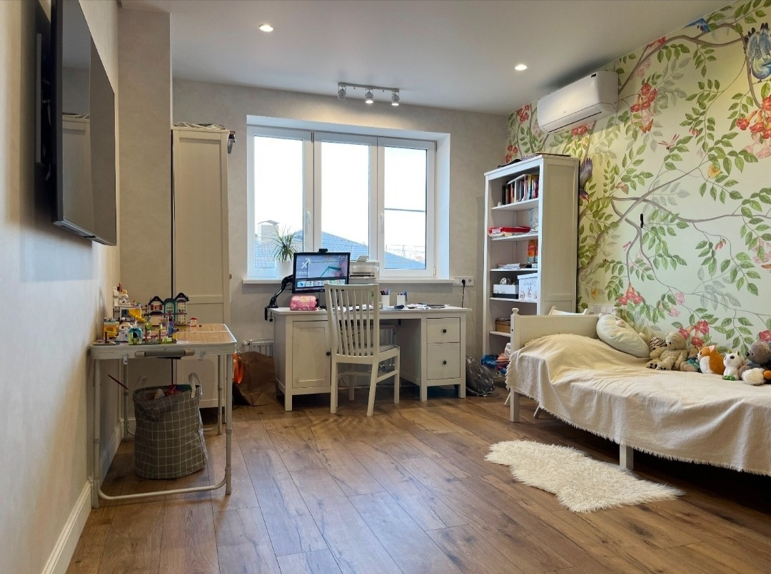 Ремонт сделан в 2022г. На 1 этаже расположены просторная кухня с гостиной, гостевая спальня, санузел, постирочная. На 2 этаже - мастер-спальня (хозяйская), детская, рабочий кабинет, гардеробная, санузел.