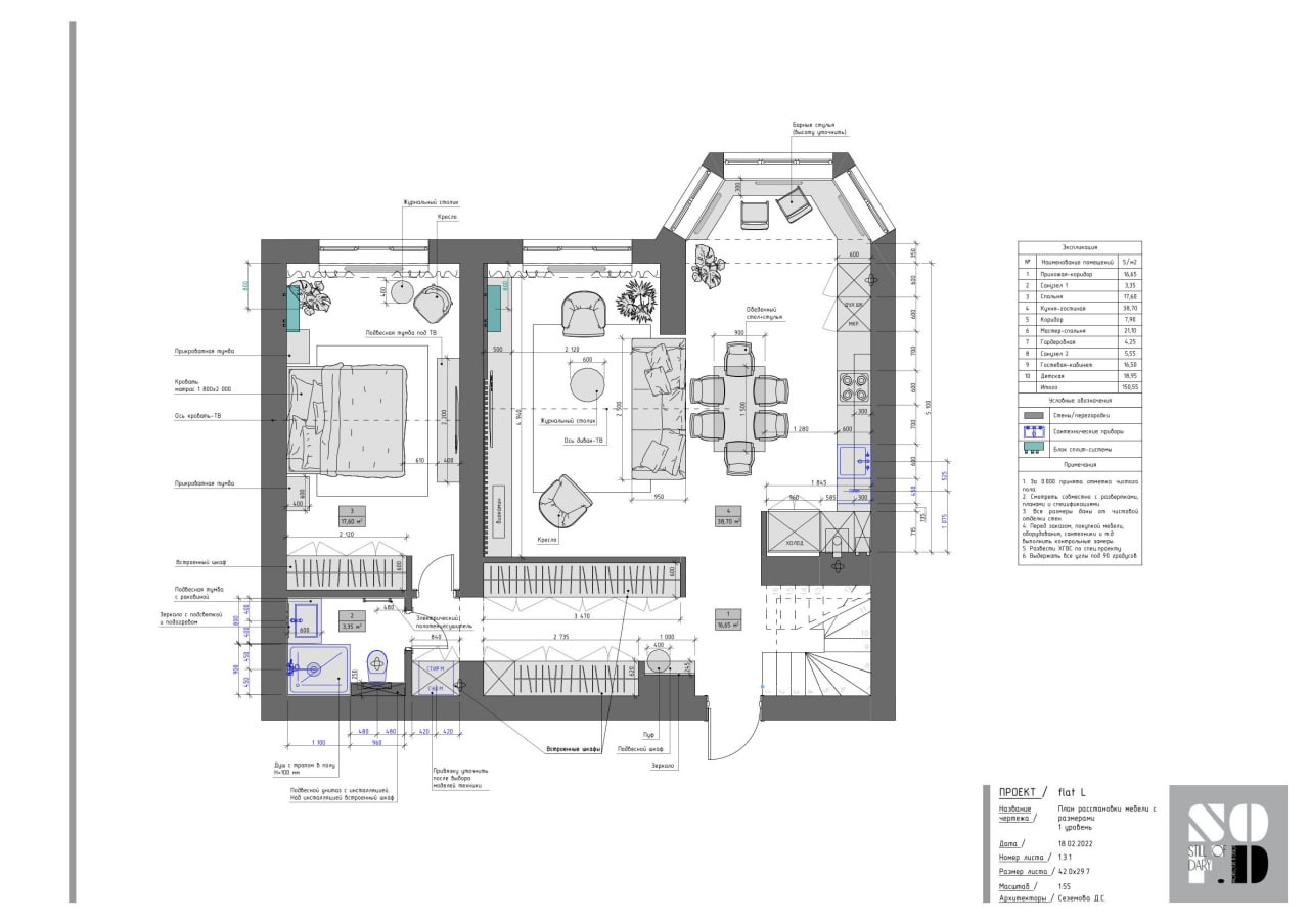 Площадь кухни 21.7 м2