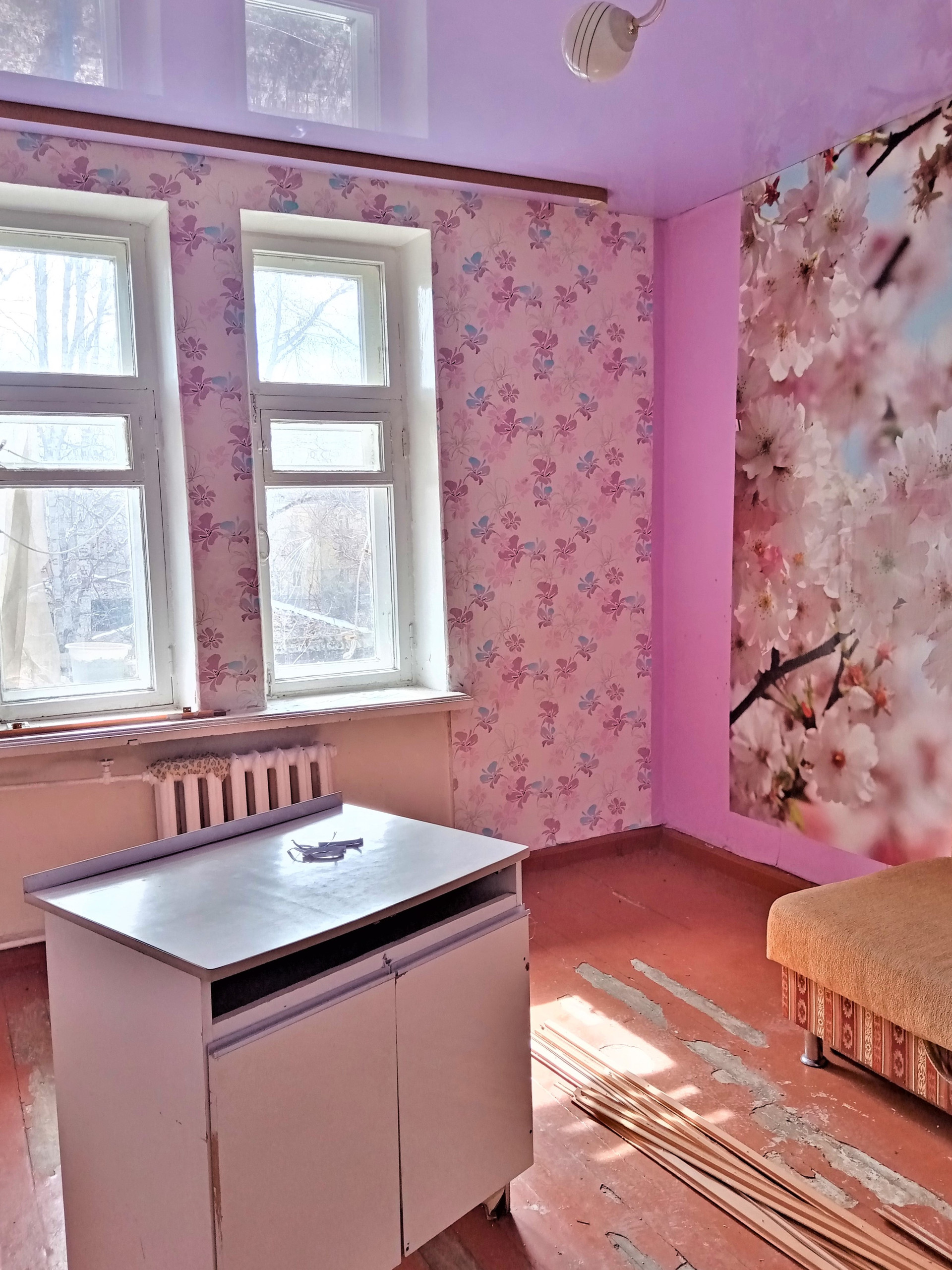 Продается комната в 3-комнатной квартире. В комнате частично сделан ремонт. В квартире соседи начали делать капитальный ремонт в местах общего пользования. В соседних комнатах живут две соседки, но мы их практически не видим.