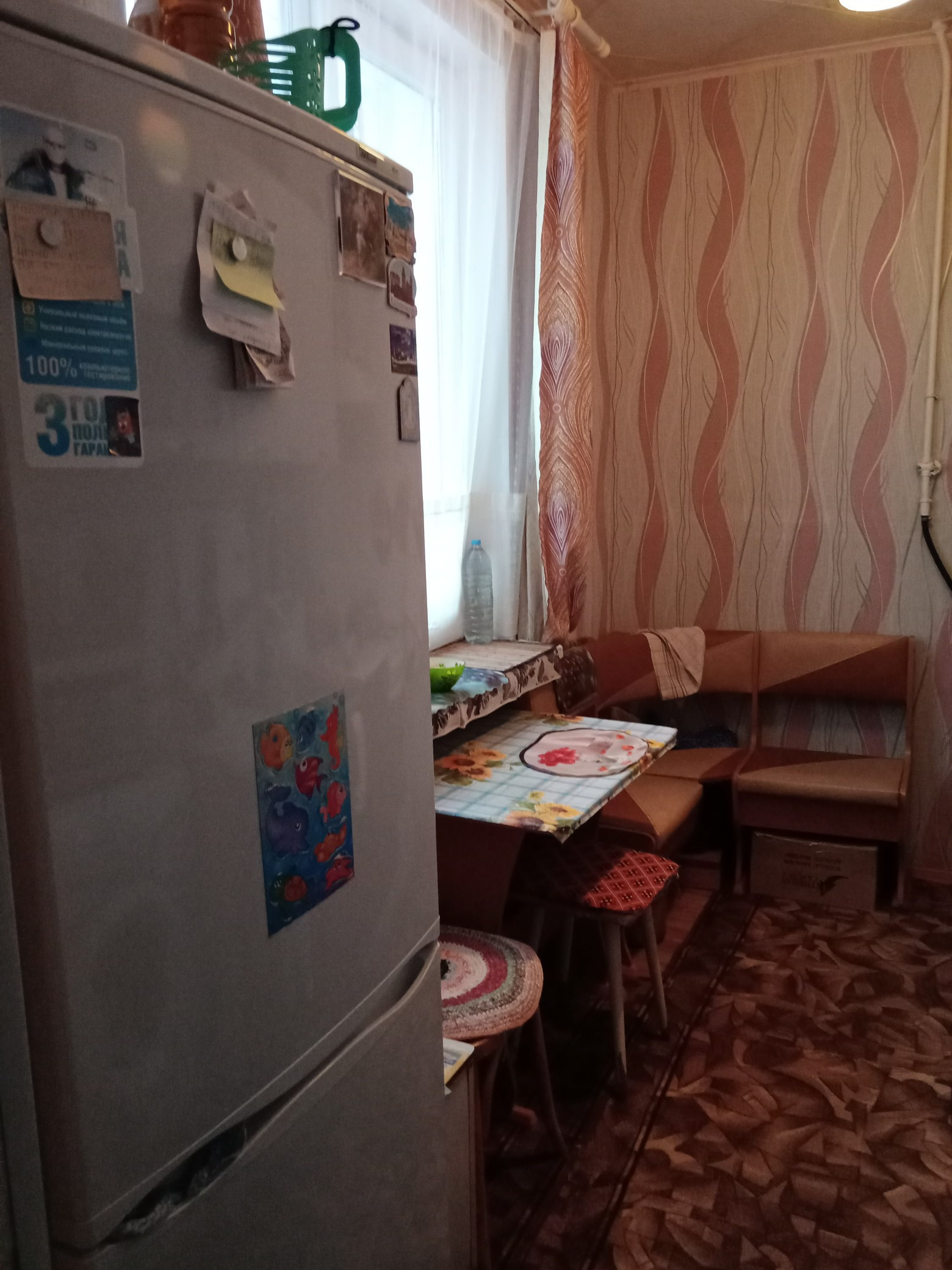 Хорошая теплая квартира, требуется косметический ремонт. Дверь сейф, счётчики на воду и электричества, окна пластик. В квартире остаётся кухня. Теплый пол в комнате и на кухне.