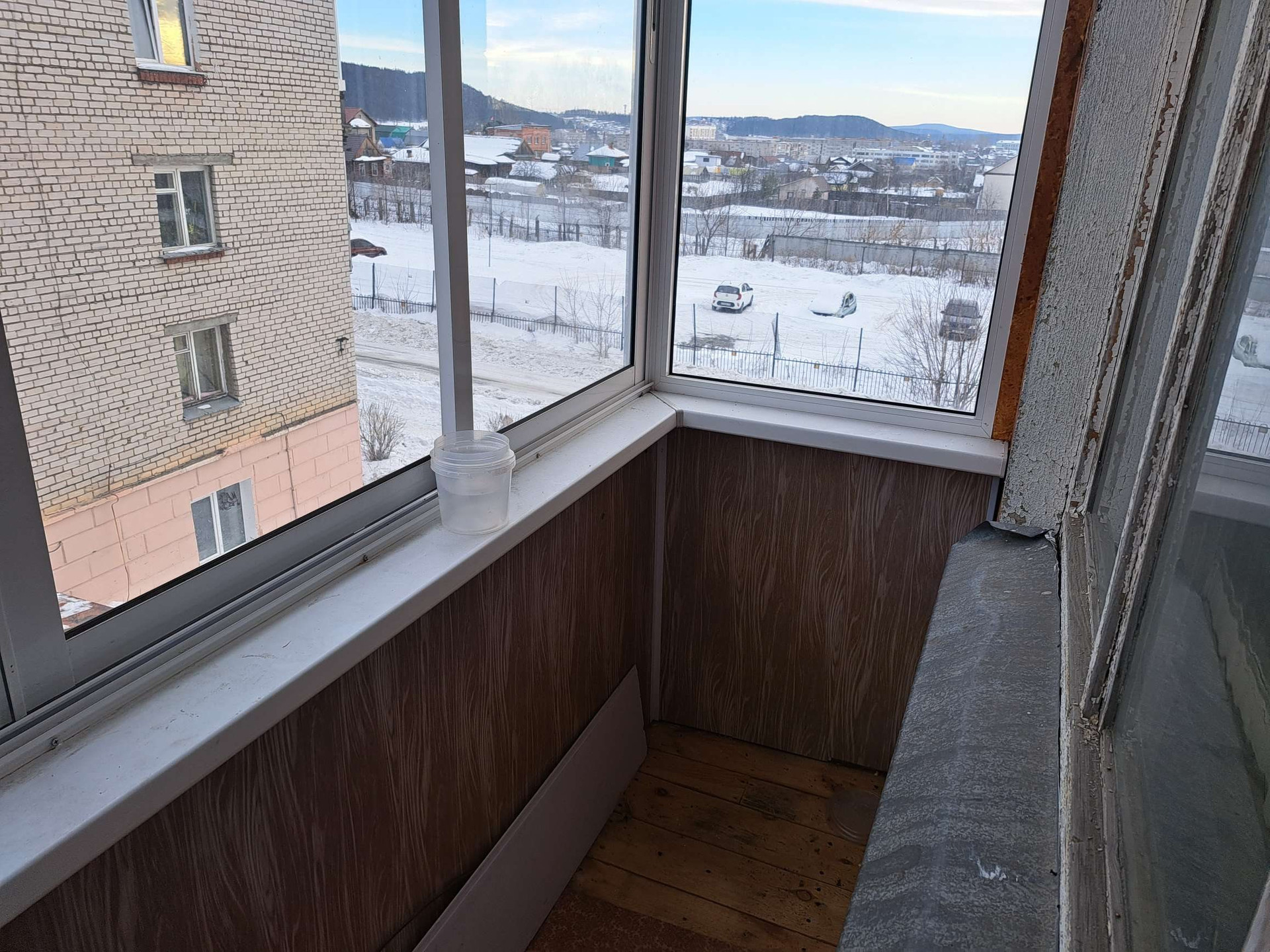 окна вставлены пластиковые. балкон застеклен