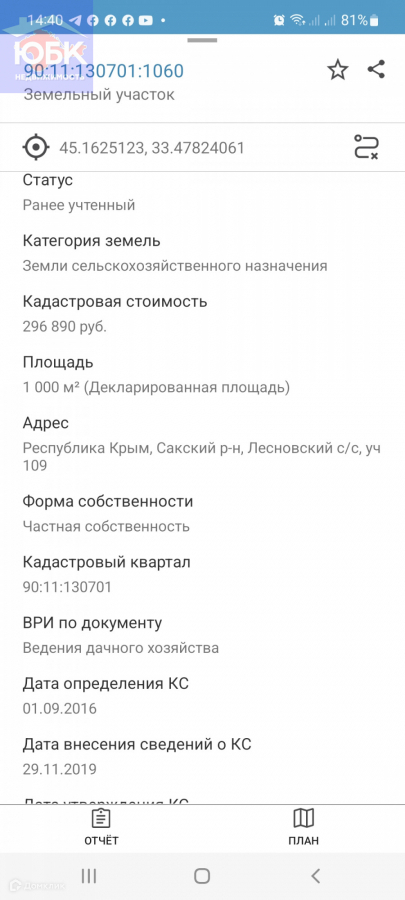 Продаётся участок в 100 метров от Каламитского залива,