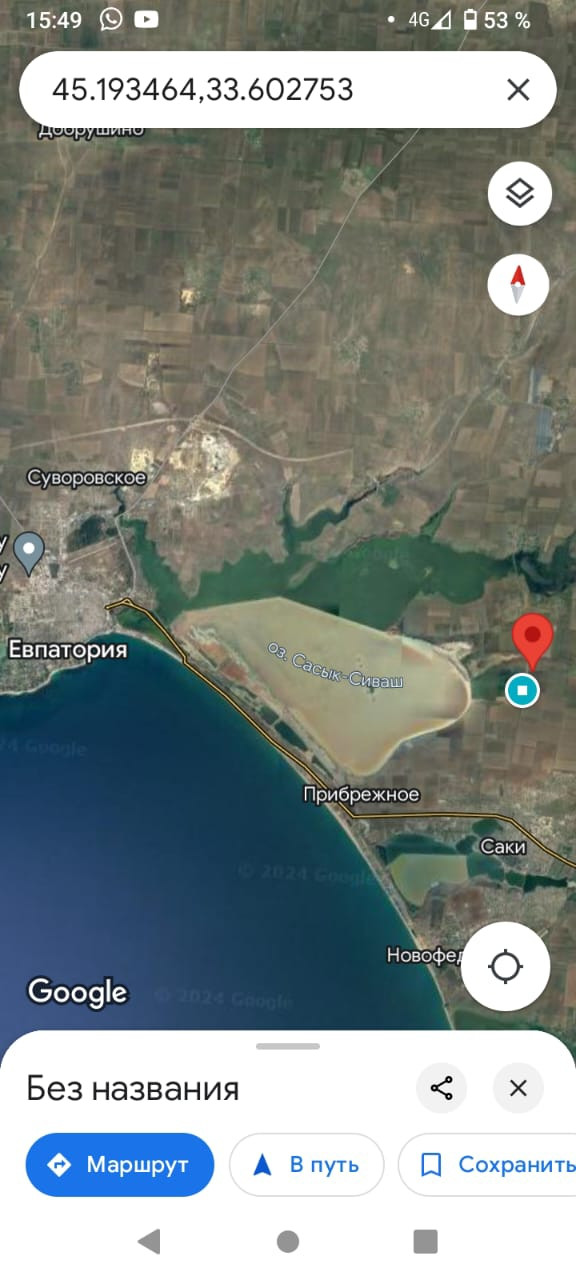 Участок находится в 15 минутах езды от Евпатории, 1 км до редчайшего  «Розового» озера, расстояние до Черного моря 5 км.