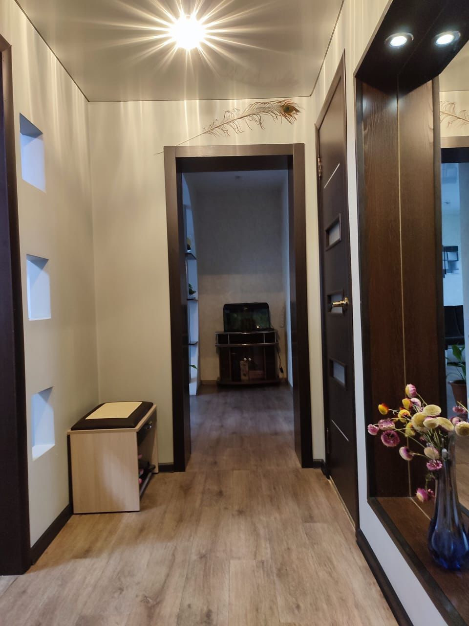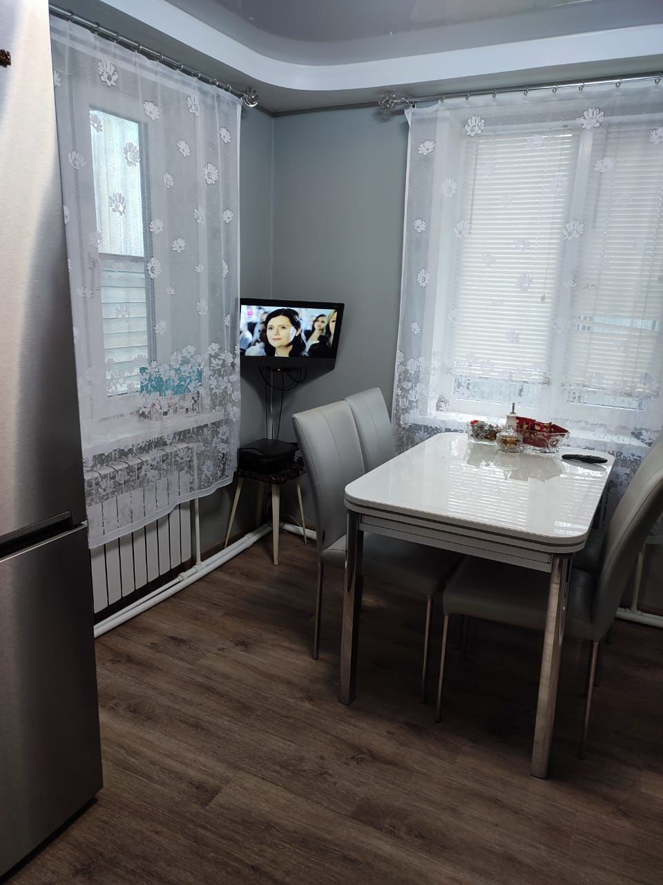 пластиковые окна, натяжные потолки, линолеум, межкомнатные двери нового образца, центральное водоснабжение/ отопление, септик. Есть гараж, баня (построена, но без отделки), теплица, парник.Очень удобная транспортная развязка: в минутной ходьбе магазины, учебные заведения, аптека, больница и прочее. Торг