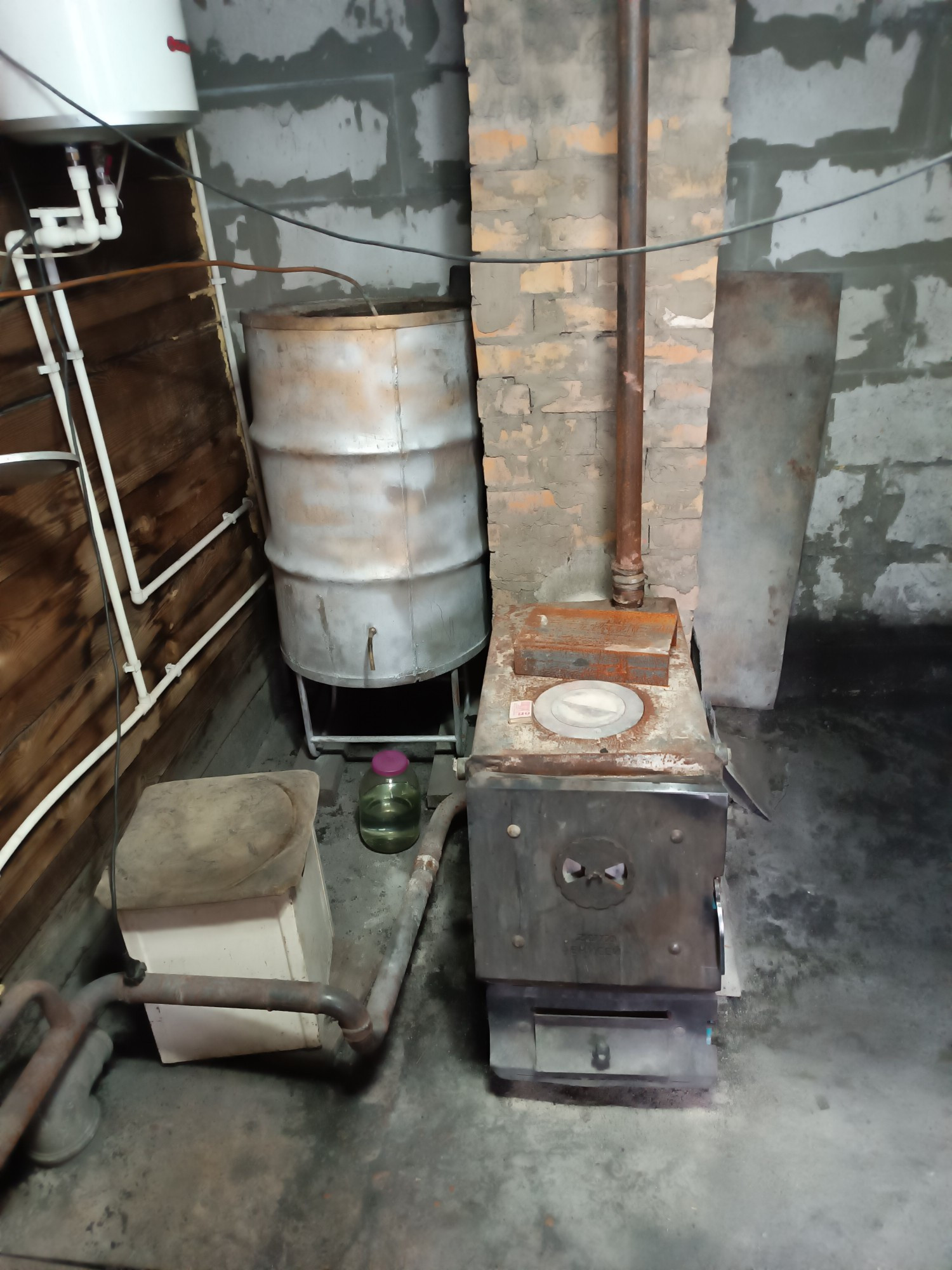 Котел дровяной, водяное отопление.