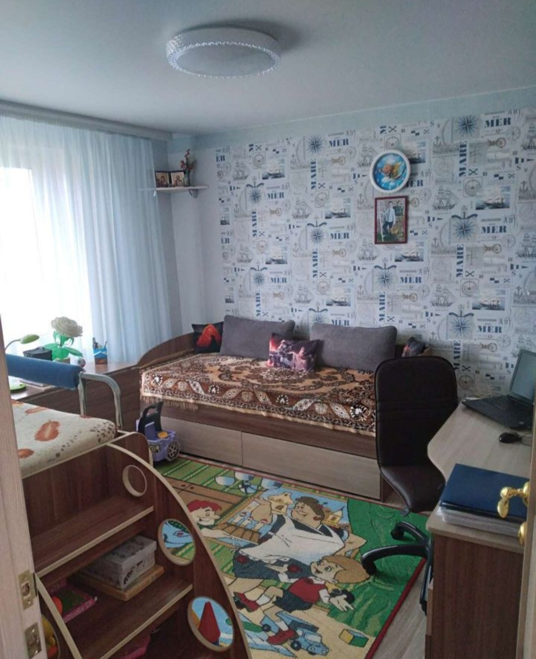 Светлая, просторная и уютная квартира в деревянном доме. Хороший ремонт и благоустроенная придомовая территория, благополучные, добродушные соседи. Рядом школа и 2 детских сада.