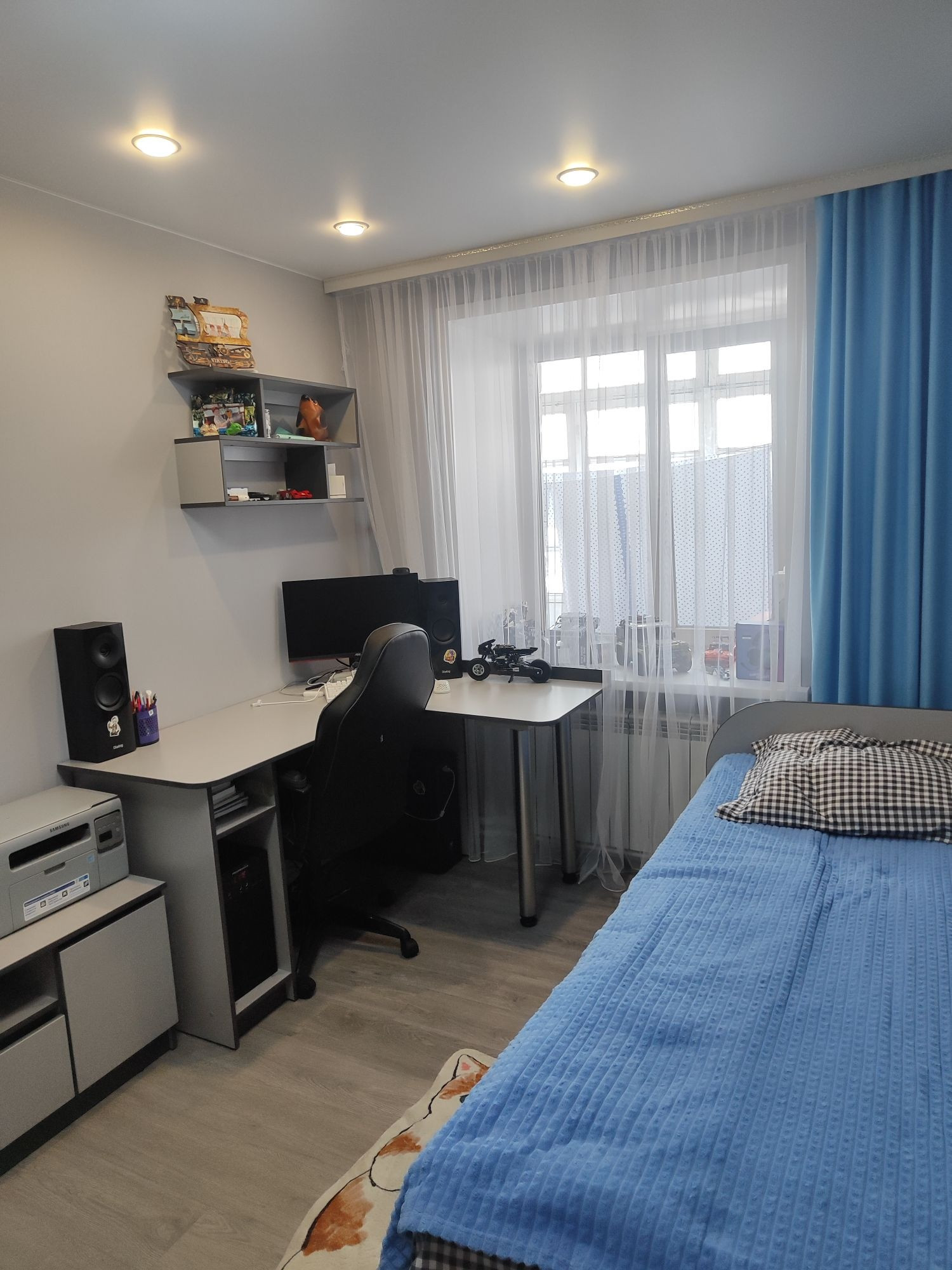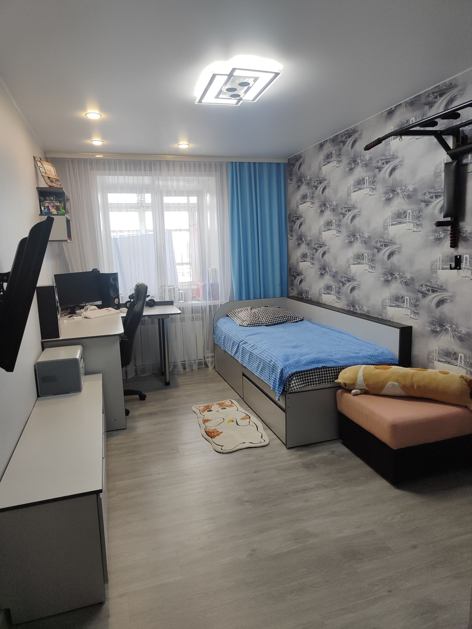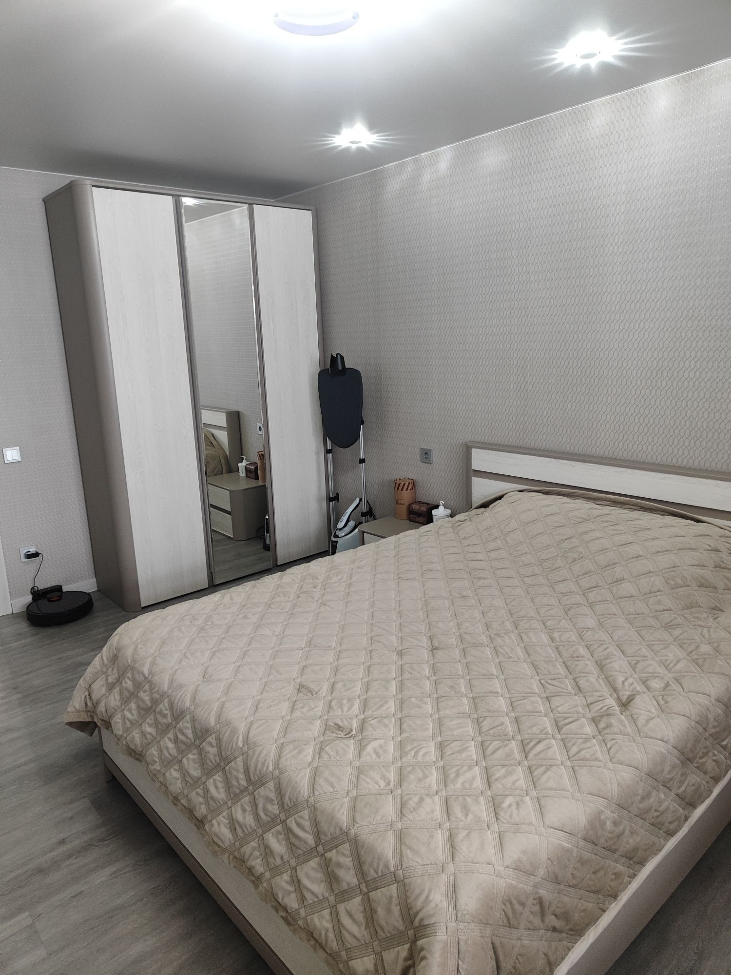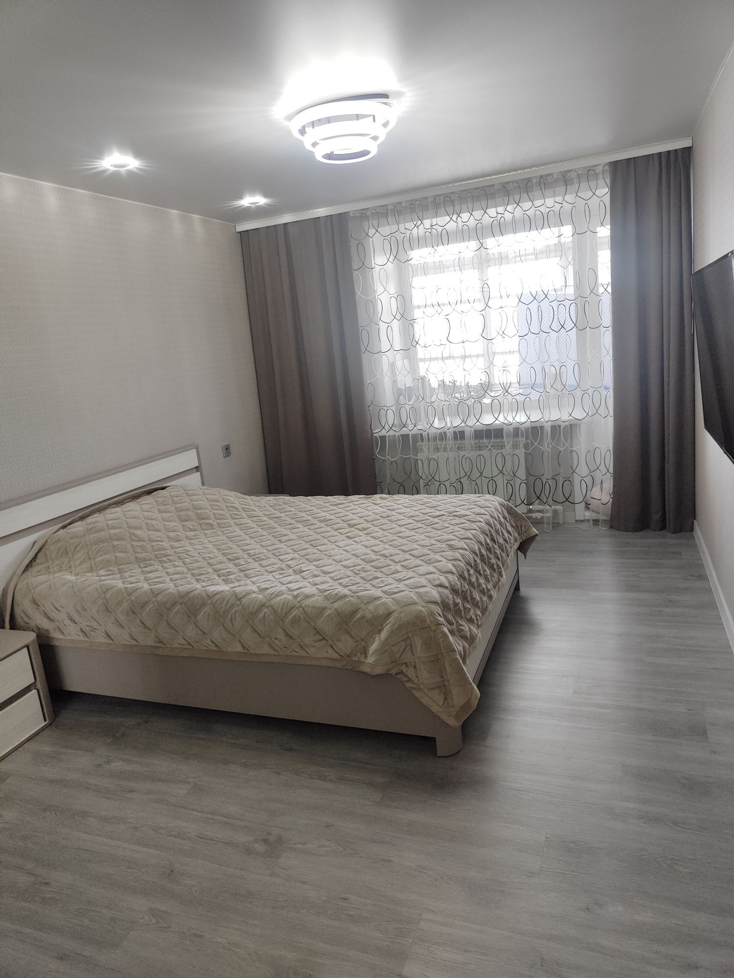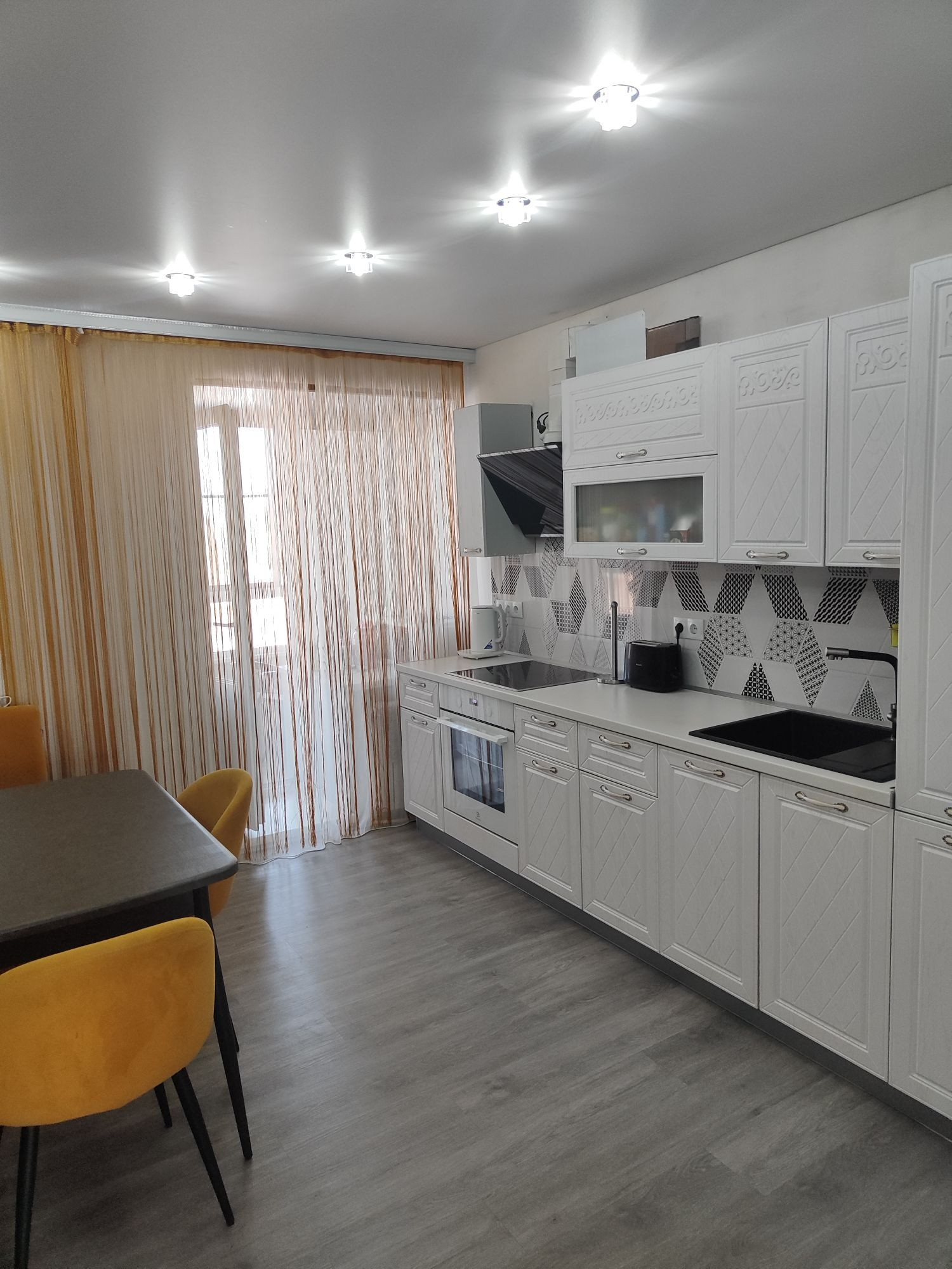 В квартире 2 лоджии. Одна небольшая выход с кухни, вторая большая 6м выход с комнаты. Окна выходят на обе стороны. Большая кухня. Сделан ремонт. Поменяна полностью электропроводка. Стены выровнены. Сантехника новая. Полы ламинат. Натяжные потолки. Квартира очень теплая!