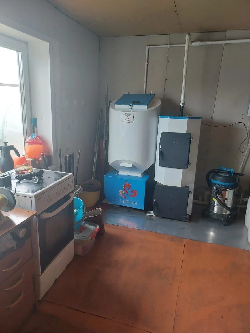 Дом на 2-х хозяев, S-90кв.м, 4 комнатный, раздельные комнаты, окна пвх, косметический ремонт. В доме имеется туалет, вода за счет насосной станции, бойлер, угольный котел с автоматической подачей,  мебелью и техникой. Имеется баня, гараж требующий ремонта, 2-е теплицы, земли 6 соток.