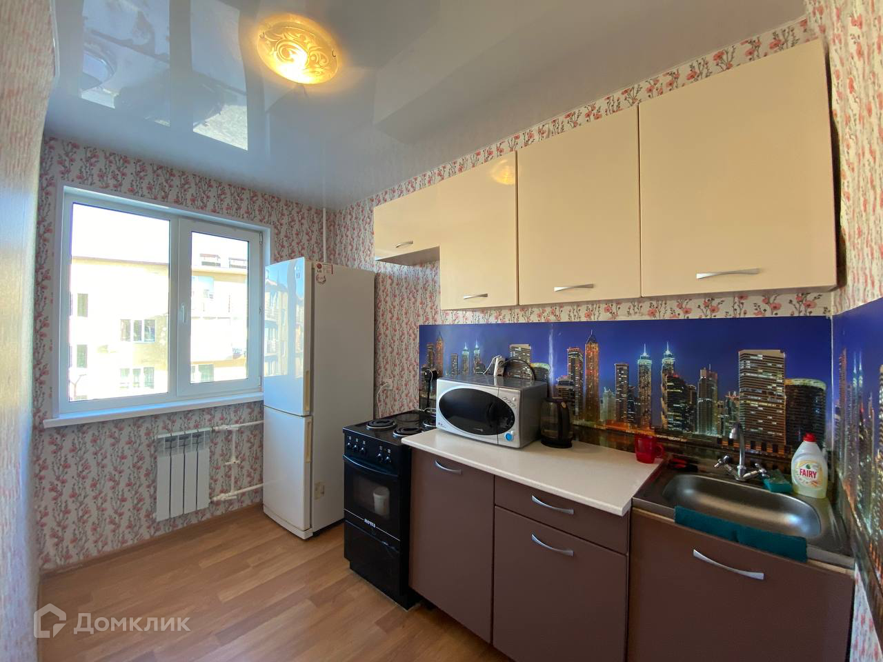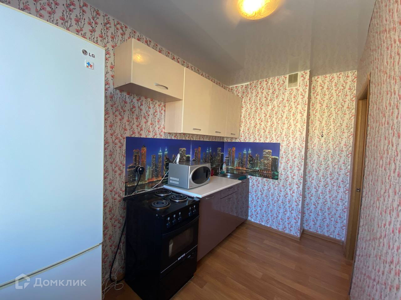 В квартире остается кухонный гарнитур, обеденная зона, диван, шкаф купе, прихожая, холодильник, микроволновая печь, плита, бойлер, стиральная машинка автомат.