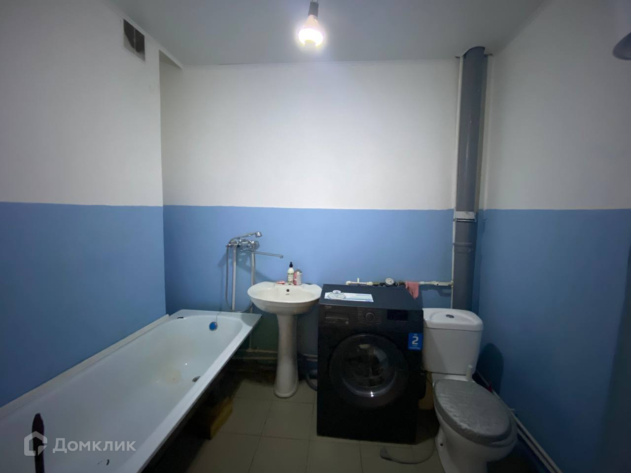 Санузел совмещен с исправной сантехникой. Стены под покраску.