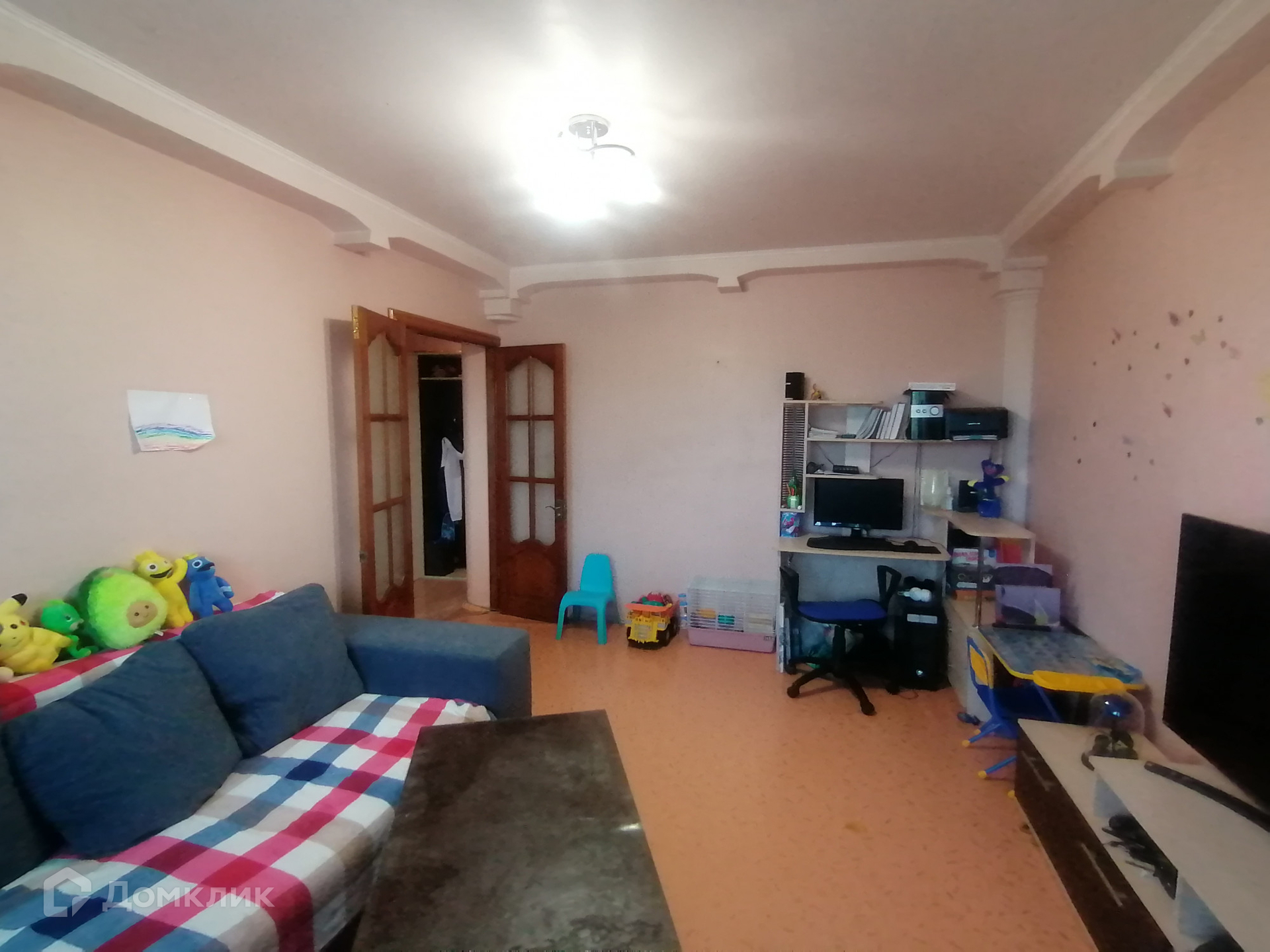 Пластиковые окна, стены и потолки выровнены, полы линолеум, в детской ковролин, железная входная дверь. Санузел в кафеле, трубы метапол.