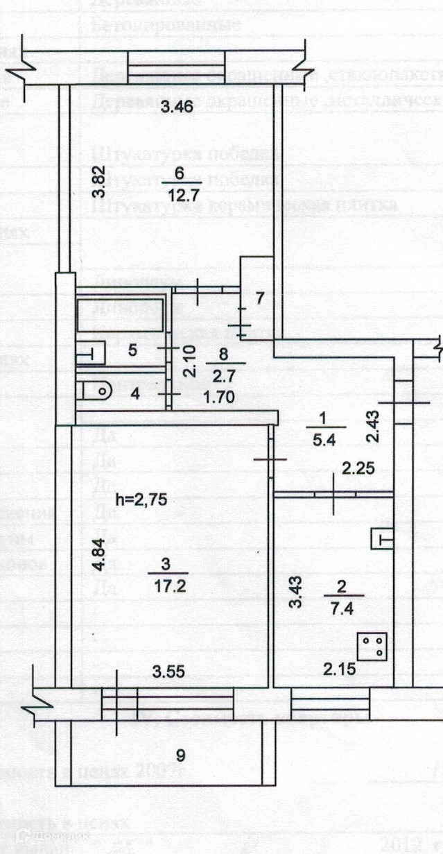 Потолок и стены побелка, полы линолеум, алюминиевые радиаторы отопления, на кухне чугунные, санузел в кафеле с исправной сантехникой, бойлер, счетчики, двойная входная дверь.