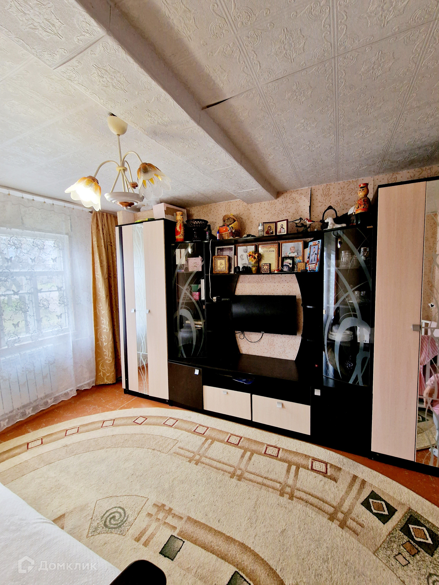 Этот дом имеет косметический ремонт. Он построен из бревенчатых стен и оборудован металлочерепичной крышей. На участке есть гараж, для вашего автомобиля и хранения инструмента.