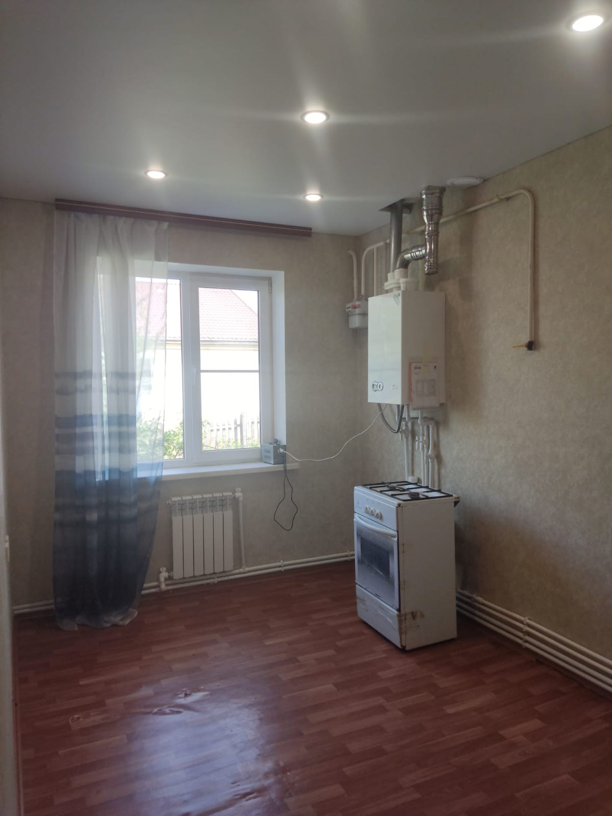 Продаем квартиру с ремонтом и приусадебном участком (можно обустроить зону барбекю, паркинг или пристроить гараж). Пластиковые окна, новые батареи и трубы, новая сантехника, установлена охранная система. Котёл, септик, материал стен-пеноблок+сайдинг. Санузел совмещен, новая сантехника и трубы, стоят счетчики на воду. Натяжные потолки, отдельный вход без соседей и подъездов.