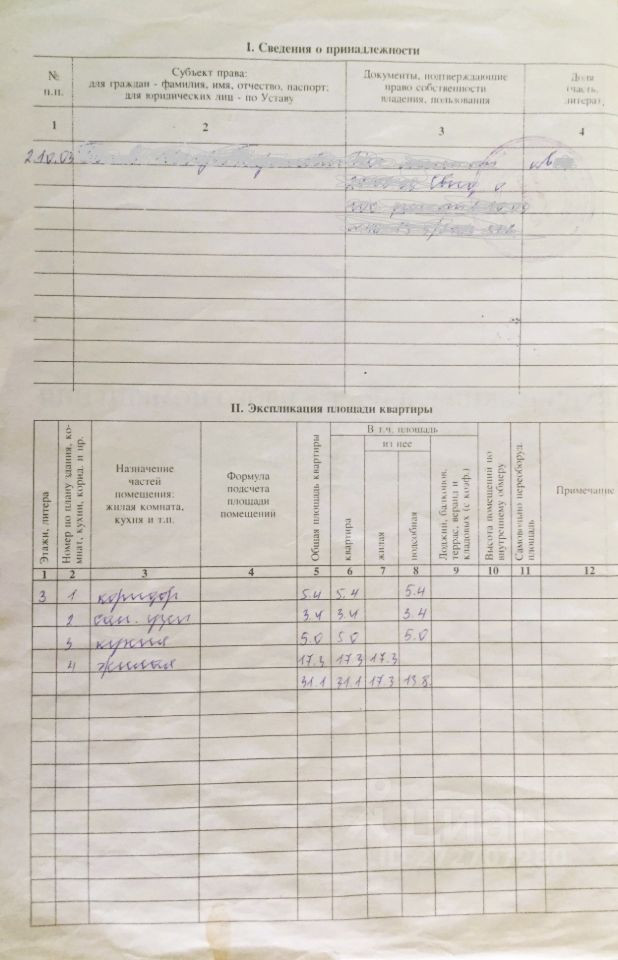 Жилая площадь 17.3 м2