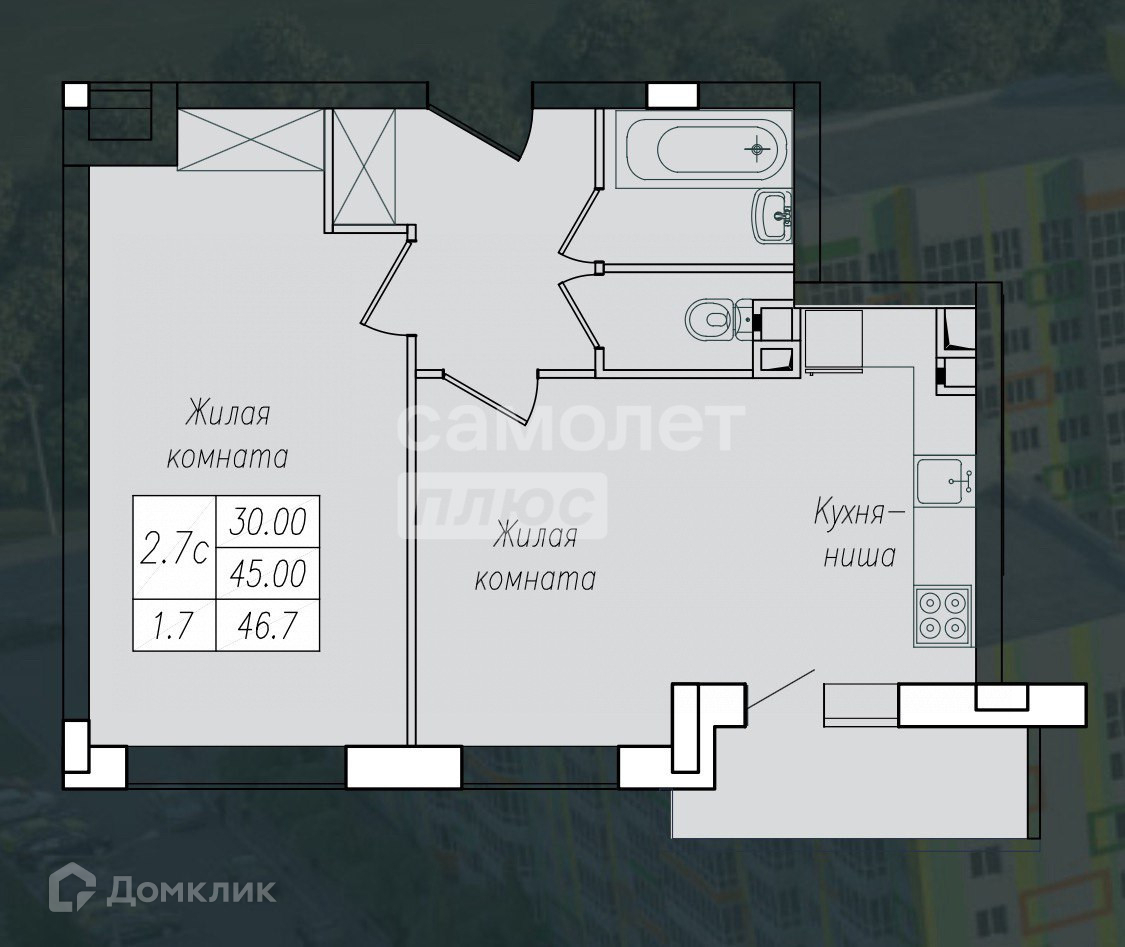 Общая площадь 46.8 м2