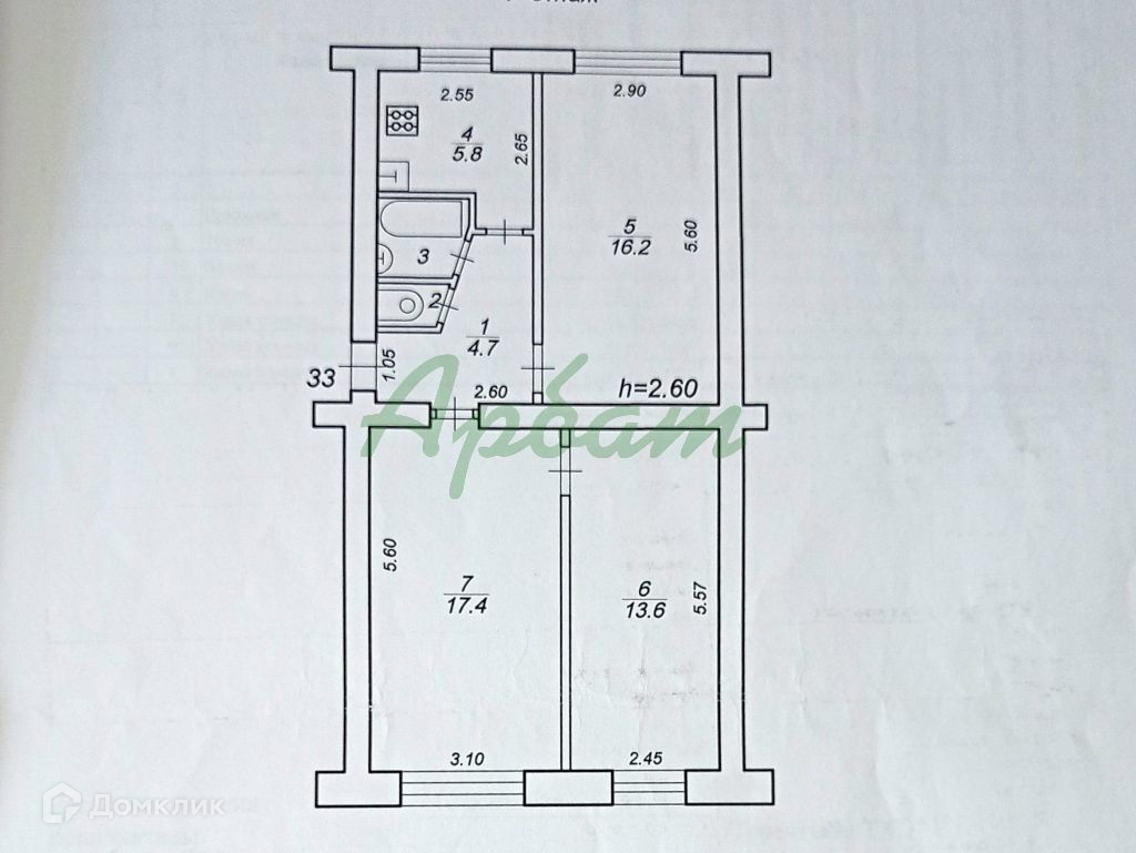 Общая площадь 60.4 м2