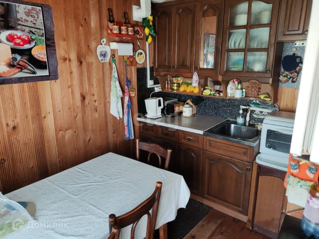 На первом этаже дома кухня, гостиная, 2 комнаты. На втором этаже одна комната.