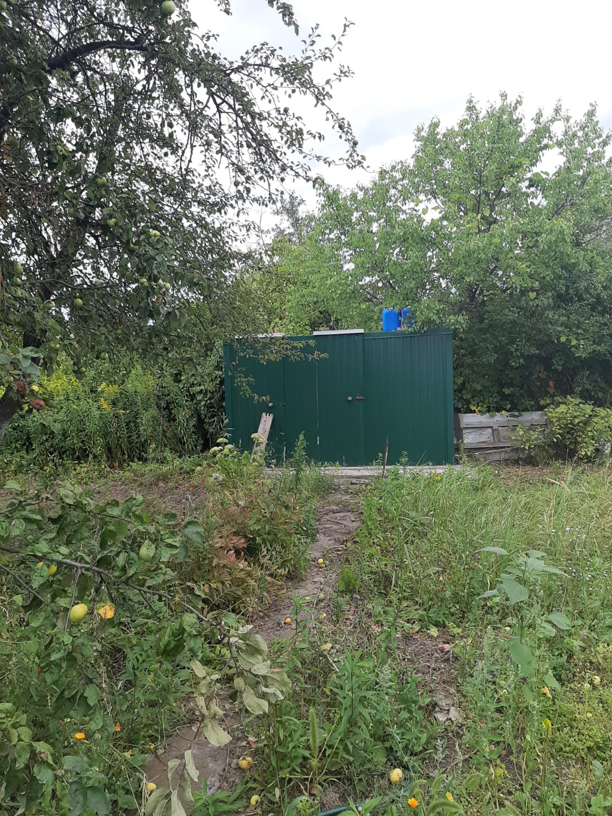 Во дворе бак для воды и бак для инструментов.