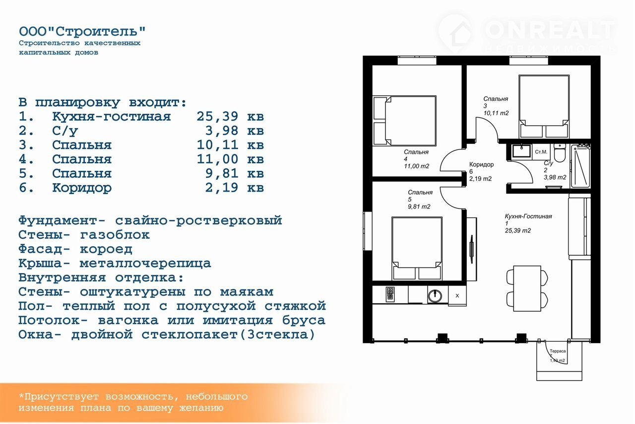 Мы ценим ваше время, поэтому срок строительства этого компактного капитального дома составляет всего 2-4 месяца. Это значит, что уже совсем скоро вы сможете наслаждаться жизнью в своем идеальном доме, построенном с любовью и вниманием к каждой детали.
