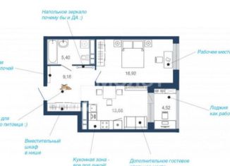 1-комнатная квартира на продажу, 41.3 м2