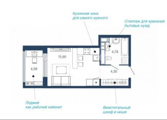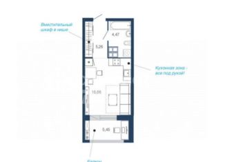 Продам 1-ком. квартиру, 18.1 м2, улица Космонавтов, 82/1