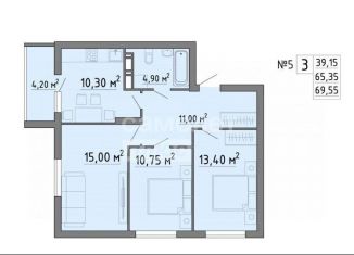 Продается трехкомнатная квартира, 69.6 м2