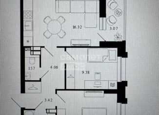 Двухкомнатная квартира на продажу, 53.4 м2