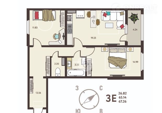 Общая площадь 67.3 м2